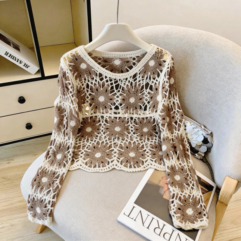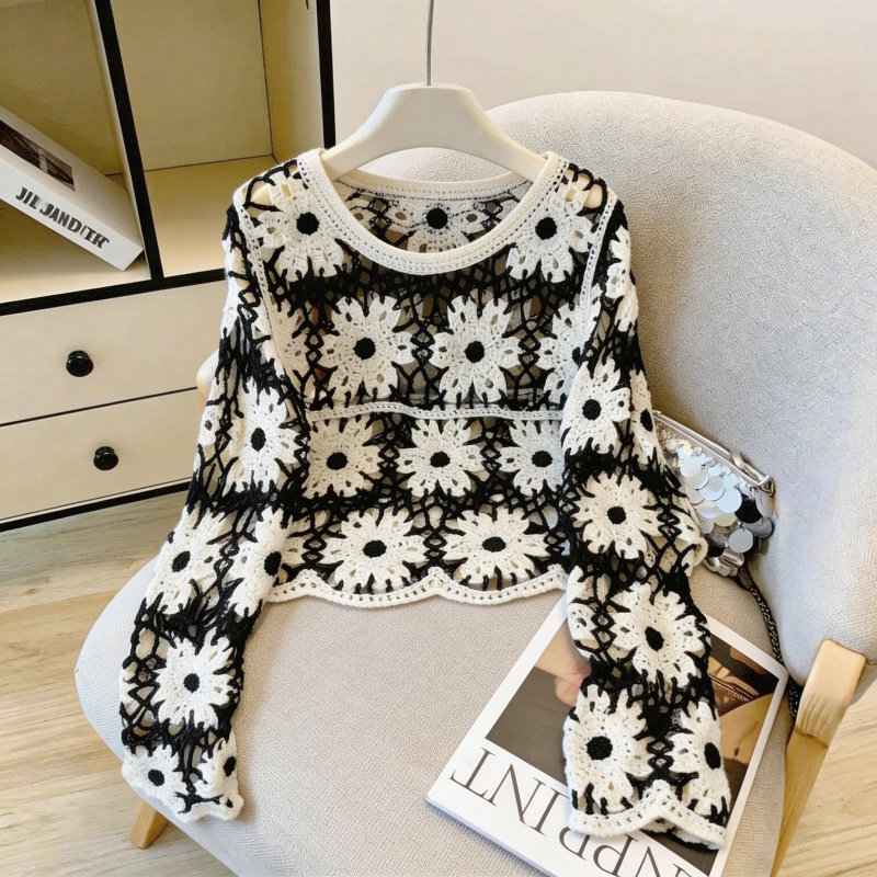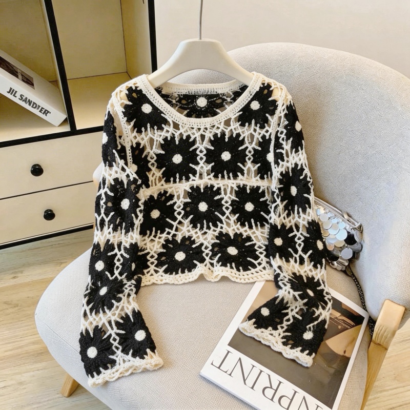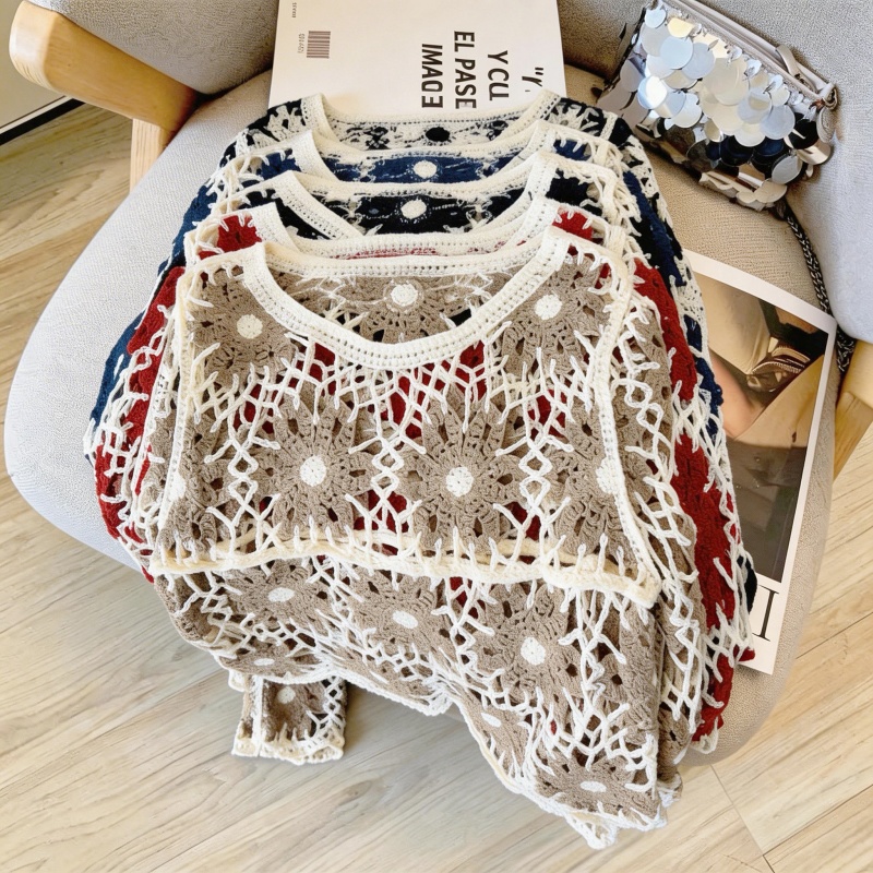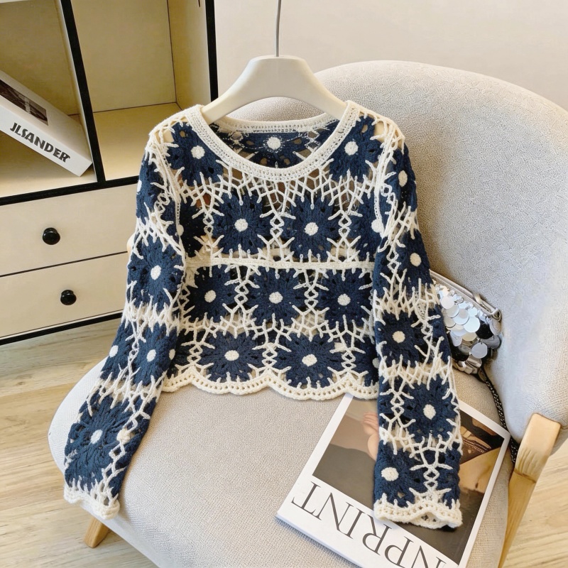 撞色设计感钩花镂空罩衫女韩系甜酷风叠穿外搭长袖针织衫 服裝批發女裝批發服飾貨源