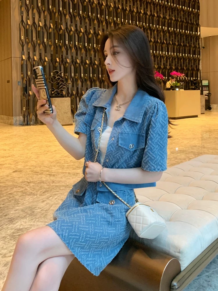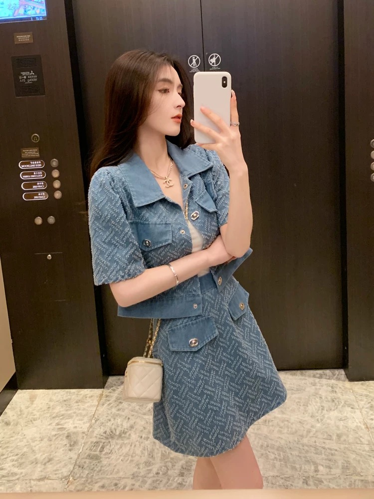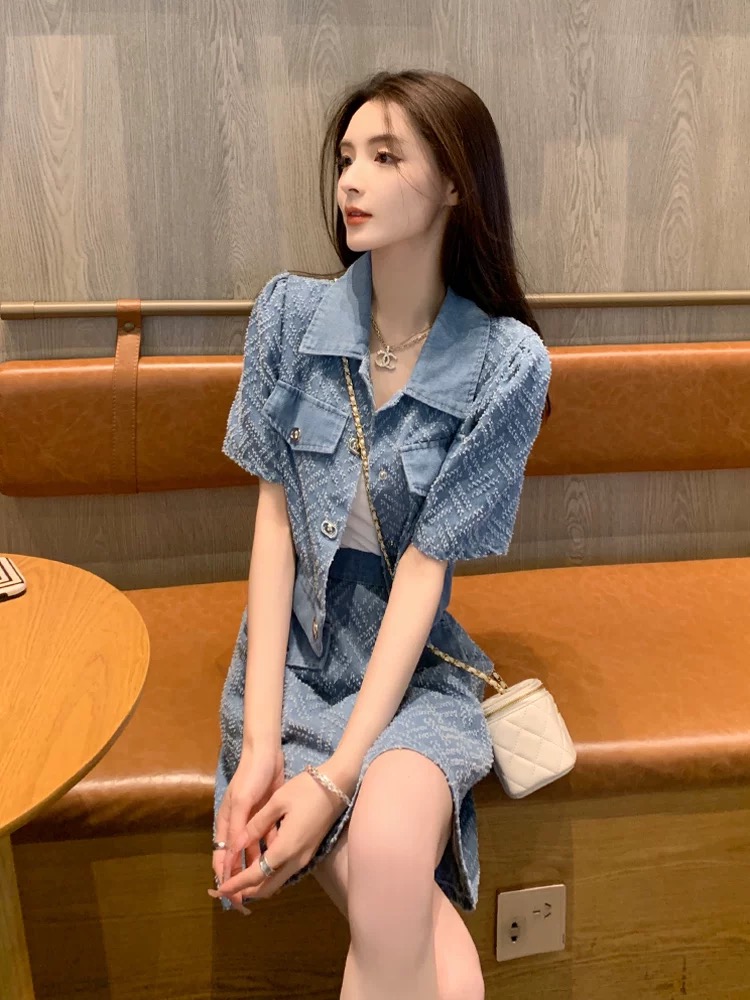 夏季套装女新款韩系时尚减龄运动休闲牛仔短袖短裙两件套洋气 服裝批發女裝批發服飾貨源