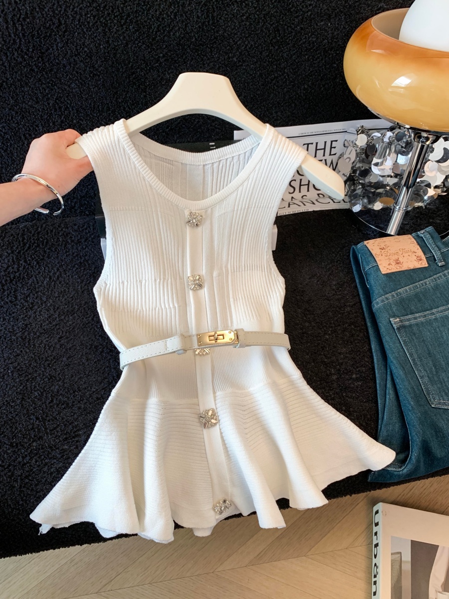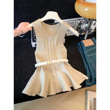 BY17770# 小香风针织衫夏季新款气质针织收腰收腰荷叶边无袖修身上衣 服裝批發女裝批發服飾貨源