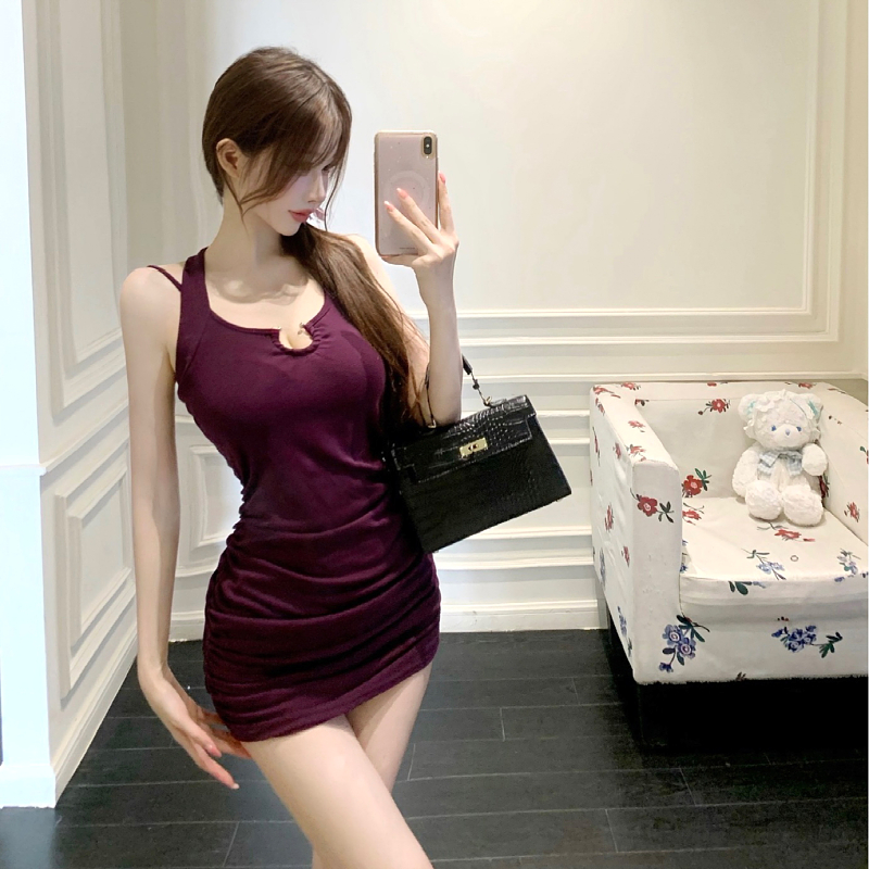 Home > 短袖连衣裙、夜店装 > 纯欲风链条露背性感吊带连衣裙夏季新款法皱褶显瘦包臀裙 服裝批發女裝批發服飾貨源