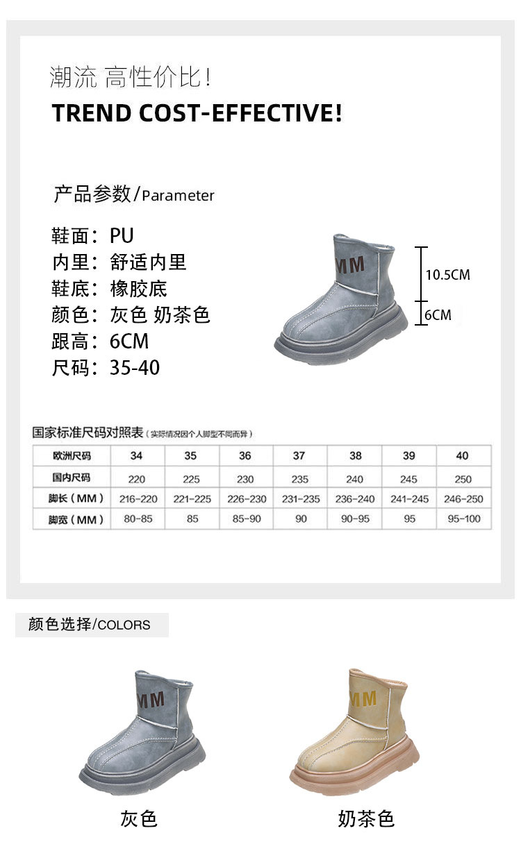 X-30872# 小个子厚底皮面时尚显高雪地靴女冬季新款质感字母款女靴 鞋子批发女鞋货源