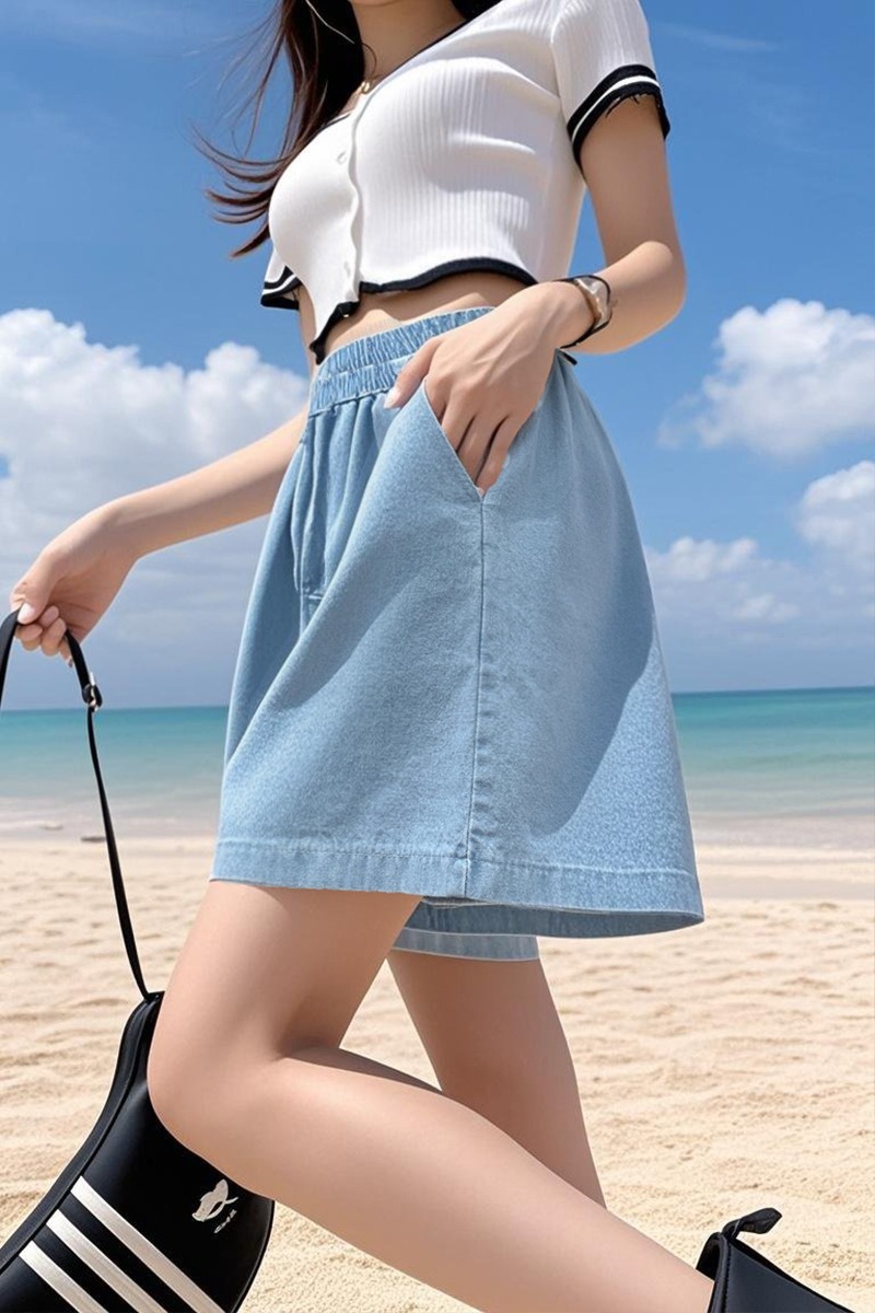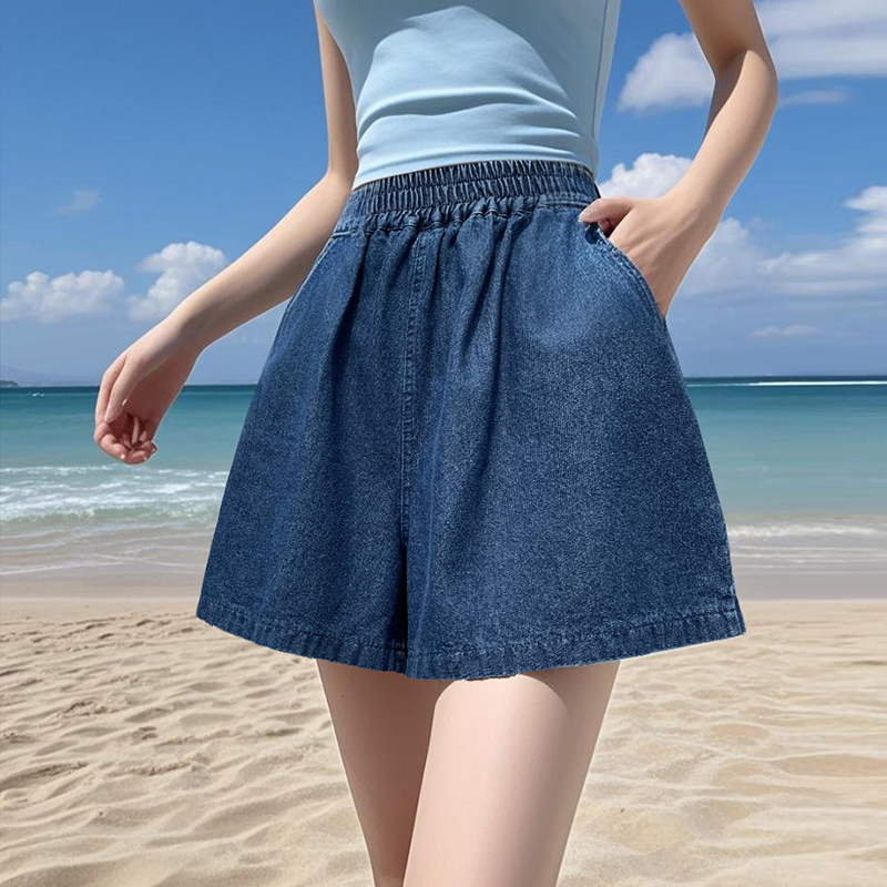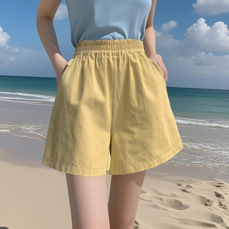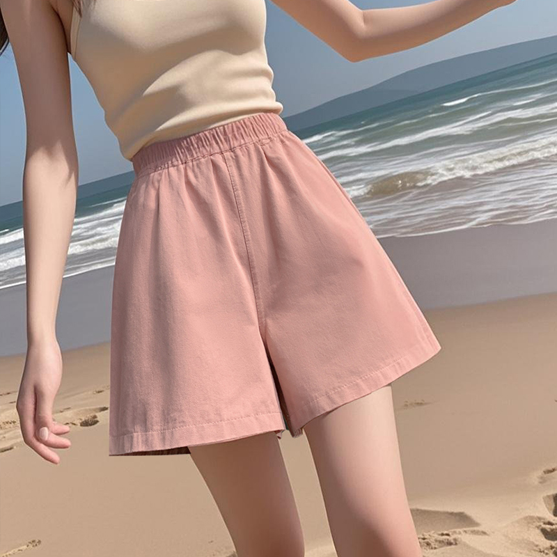 FA33756# 工装短裤女夏薄款松紧高腰小个子休闲宽松显瘦a字阔腿五分裤 服裝批發女裝批發服飾貨源