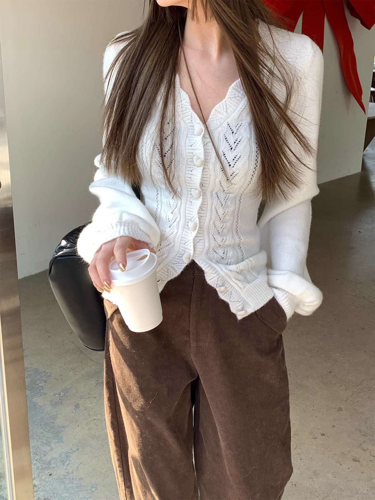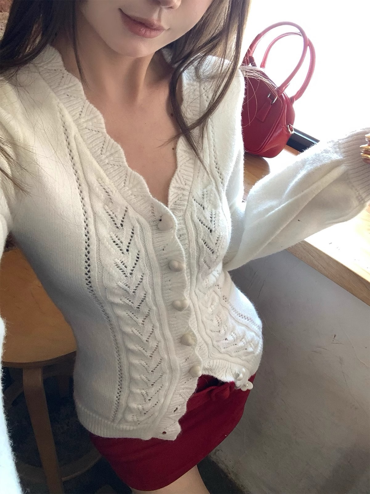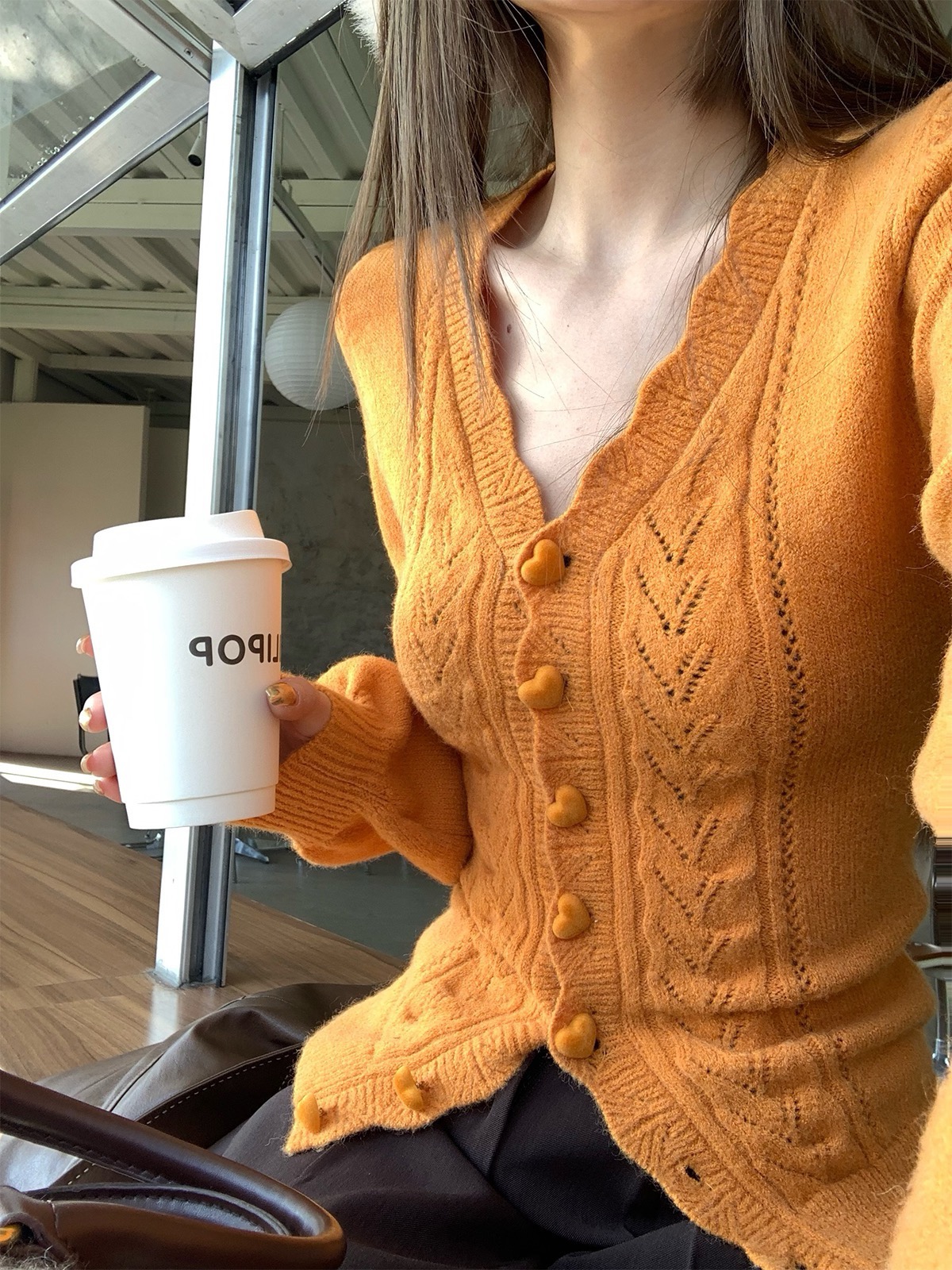FA44881# 初雪夕暮织风私语V领毛针织开衫女修身显瘦外搭上衣秋 服裝批發女裝批發服飾貨源