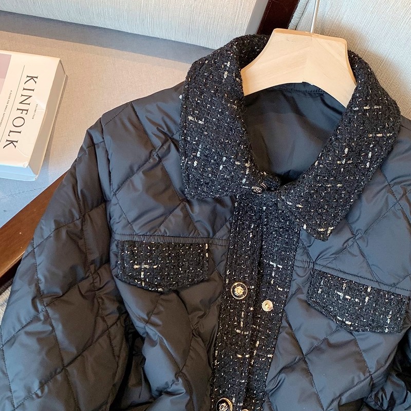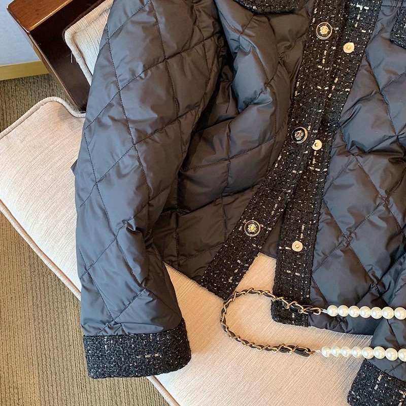 FA51902# 黑色小香风菱格棉服女冬季新款欧洲站欧货设计感轻薄夹棉外套 服裝批發女裝批發服飾貨源