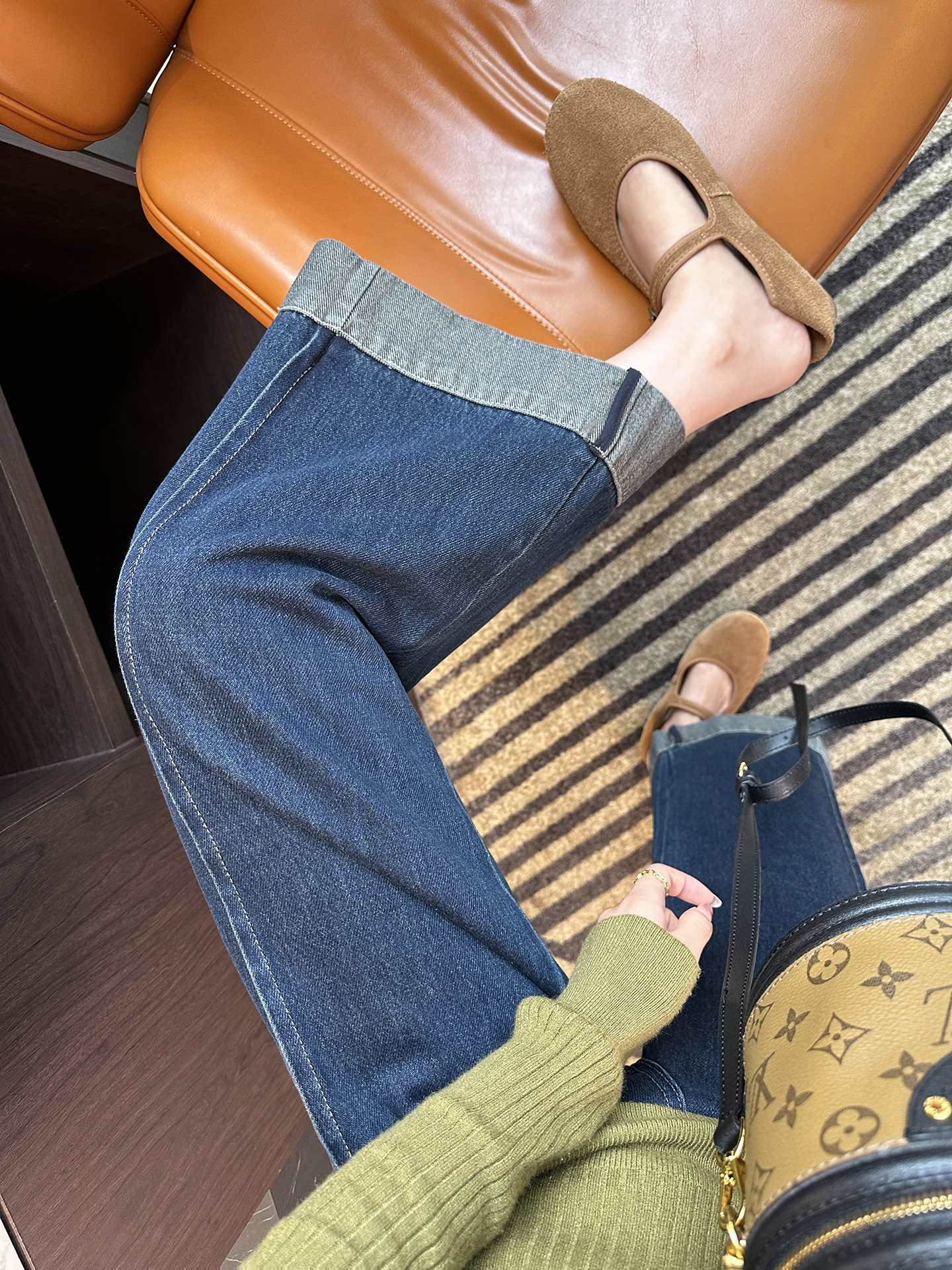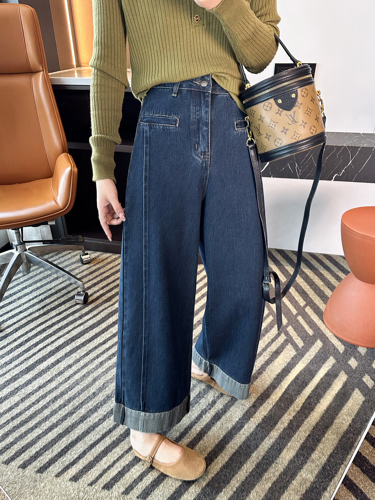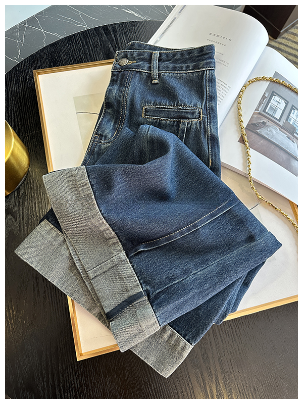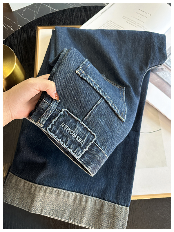 FA52088# 直筒卷边大码牛仔裤女秋新款胖mm显瘦百搭时尚遮胯九分阔腿裤 服裝批發女裝批發服飾貨源