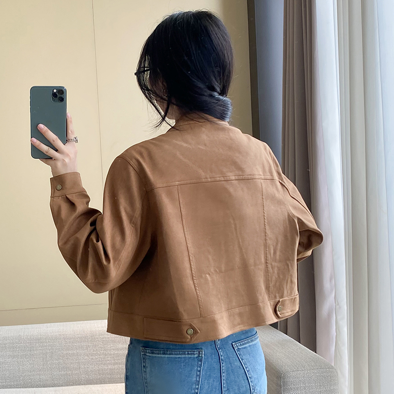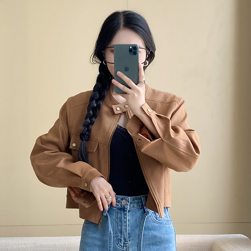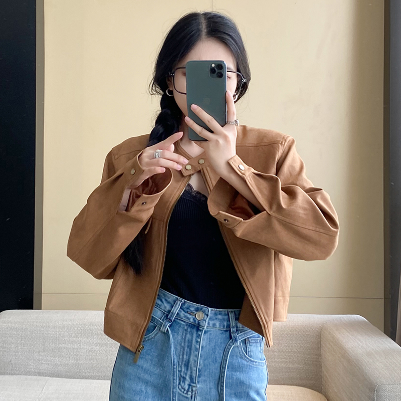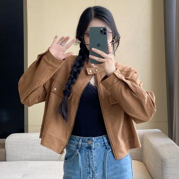 FA52100# 烟汀傍晚小个子鹿皮绒外套女秋季宽松短款夹克上衣 服裝批發女裝批發服飾貨源