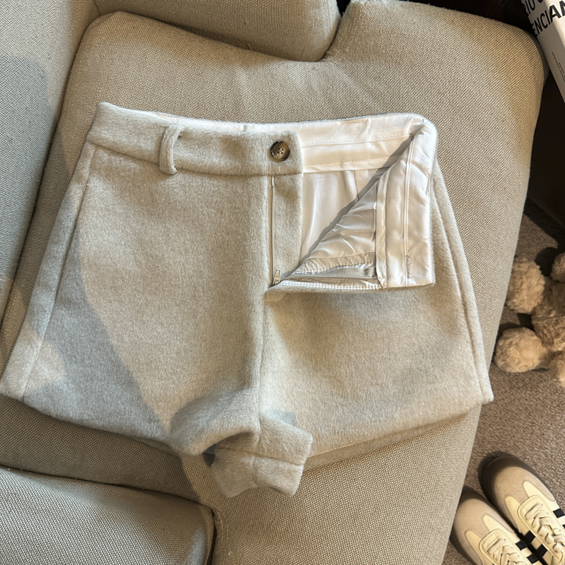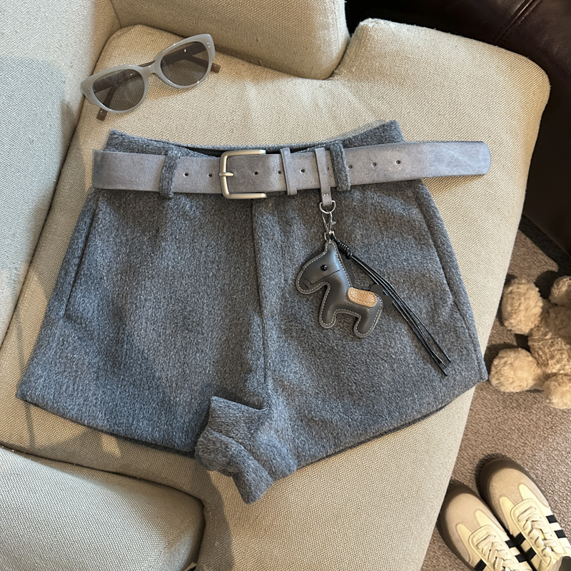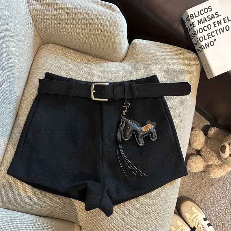 FA52117# 时尚百搭高腰显瘦毛呢阔腿裤短裤女秋冬新款配腰带小马挂件 服裝批發女裝批發服飾貨源