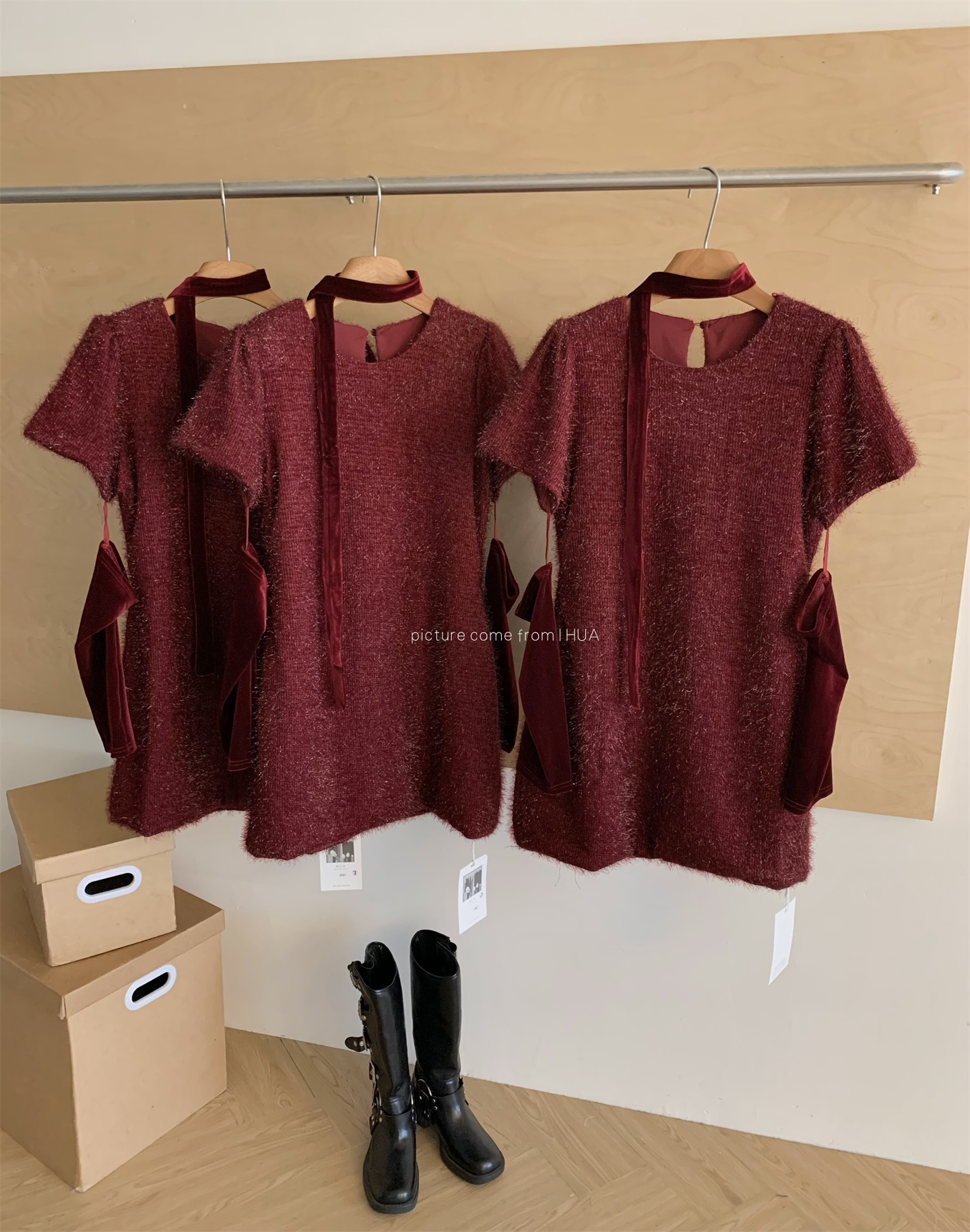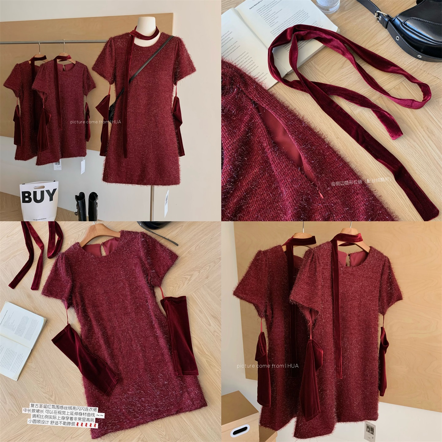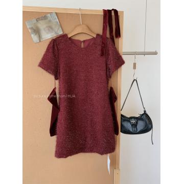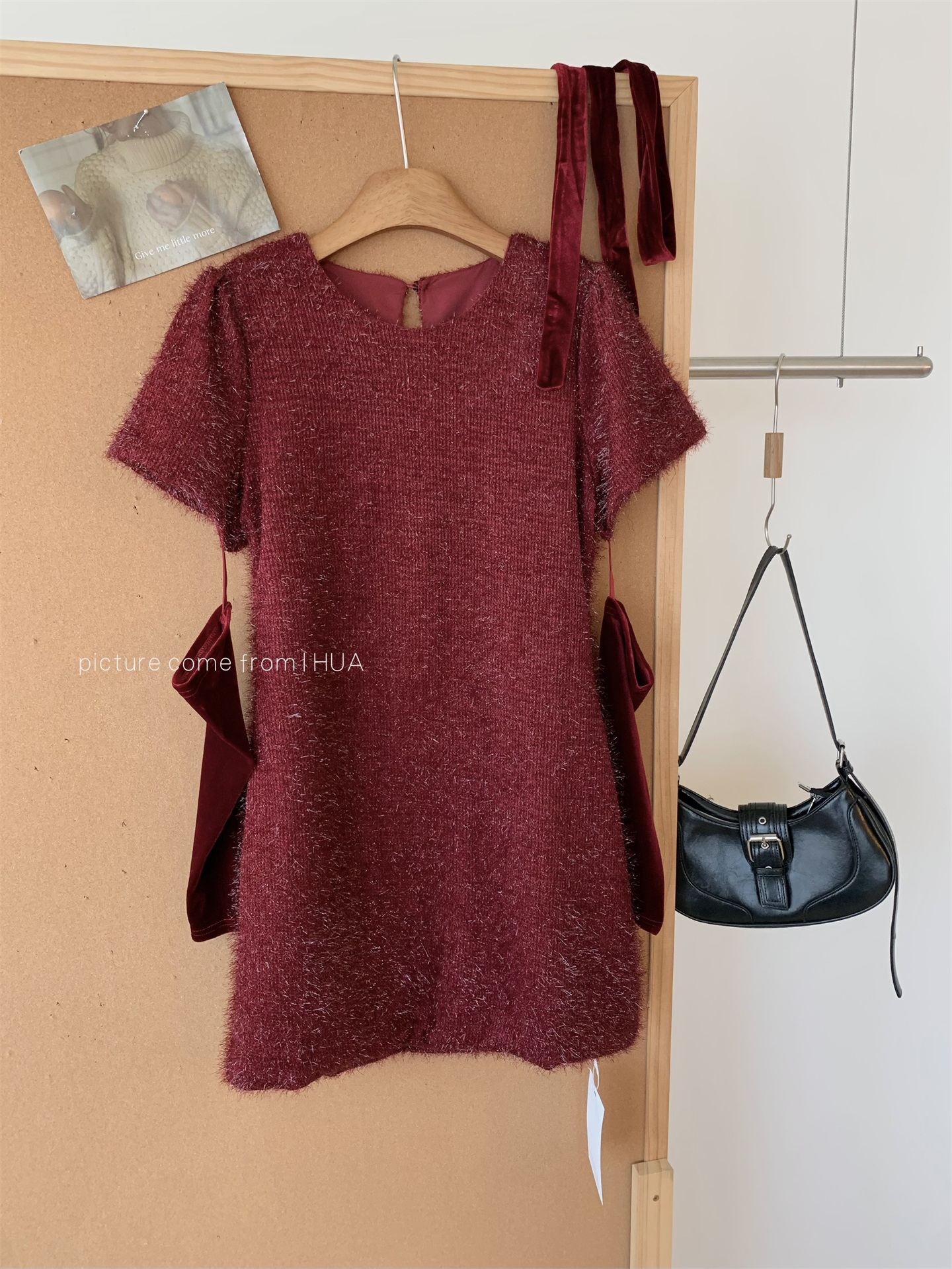 FA52130# 法式气质高级感宽松显瘦订婚裙冬季氛围感针织圆领连衣裙 服裝批發女裝批發服飾貨源