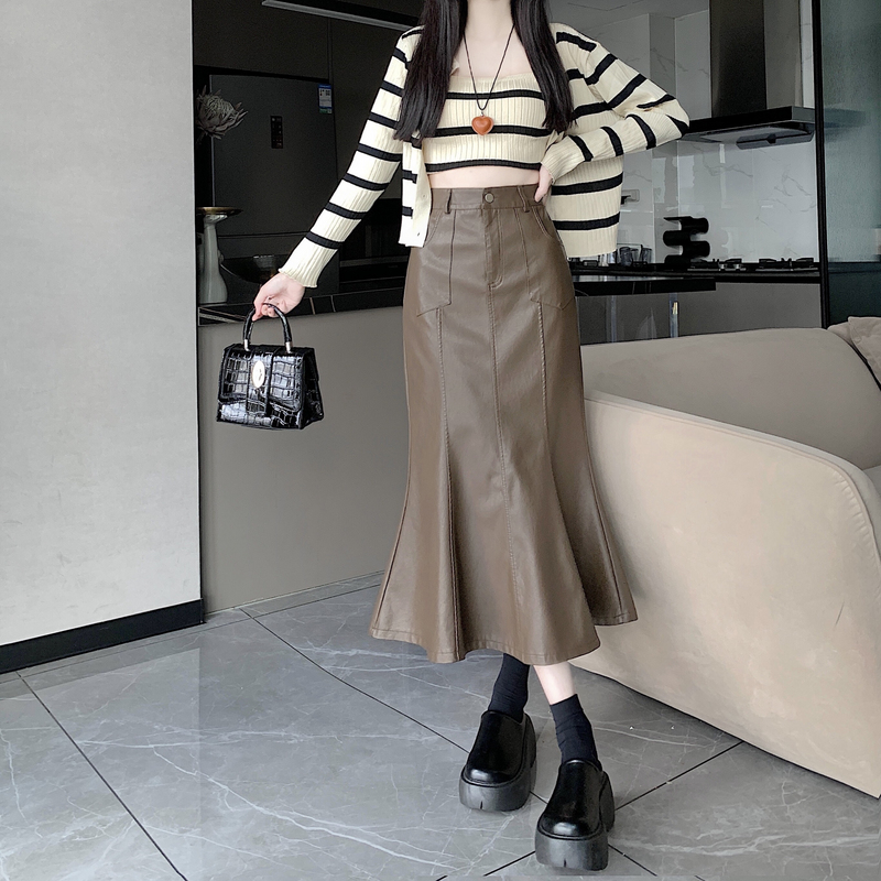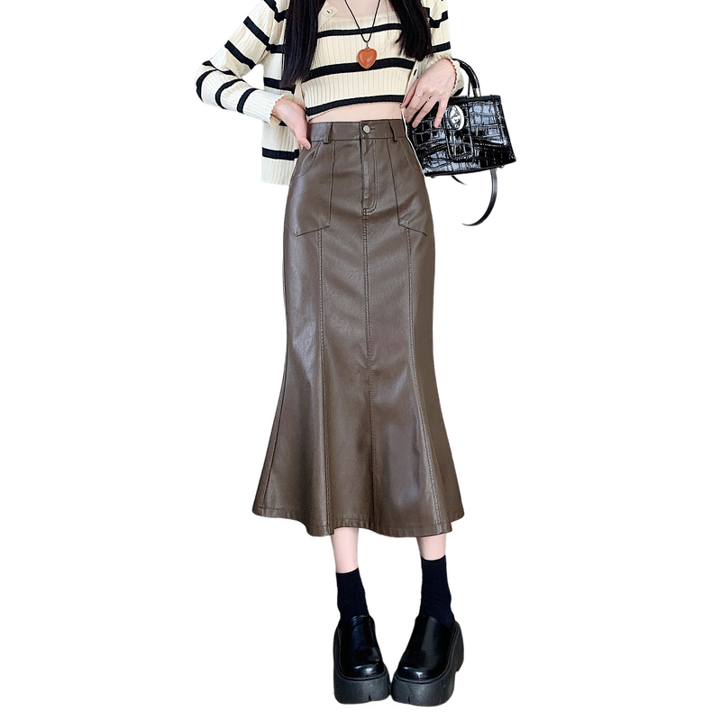 FA52154# 鱼尾裙半身裙女秋季皮裙新款高腰包臀裙A字裙裙子中长裙 服裝批發女裝批發服飾貨源
