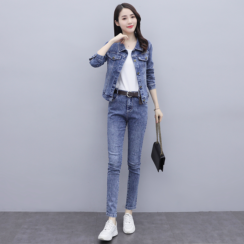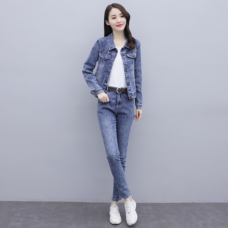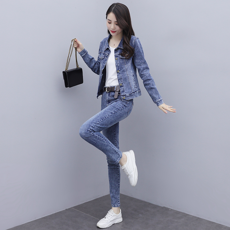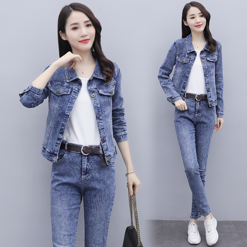 FA52225# 实拍早春牛仔穿搭一整套女新款牛仔两件套装 服裝批發女裝批發服飾貨源