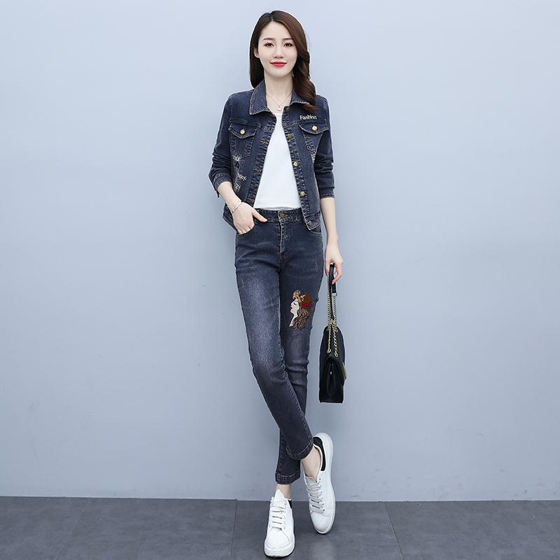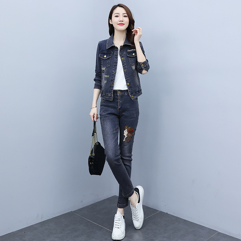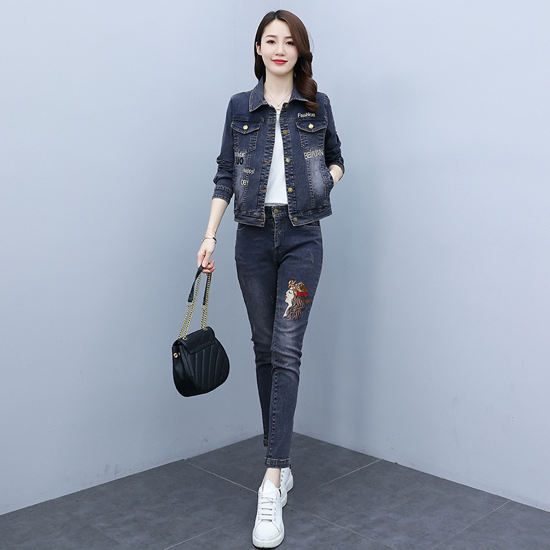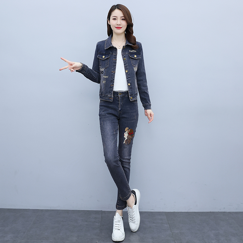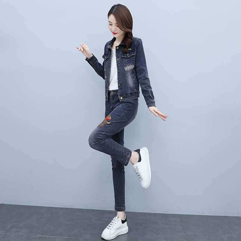 FA52226# 抖音大爆款实拍春季新款炸街牛仔套装裤女设计感两件套 服裝批發女裝批發服飾貨源
