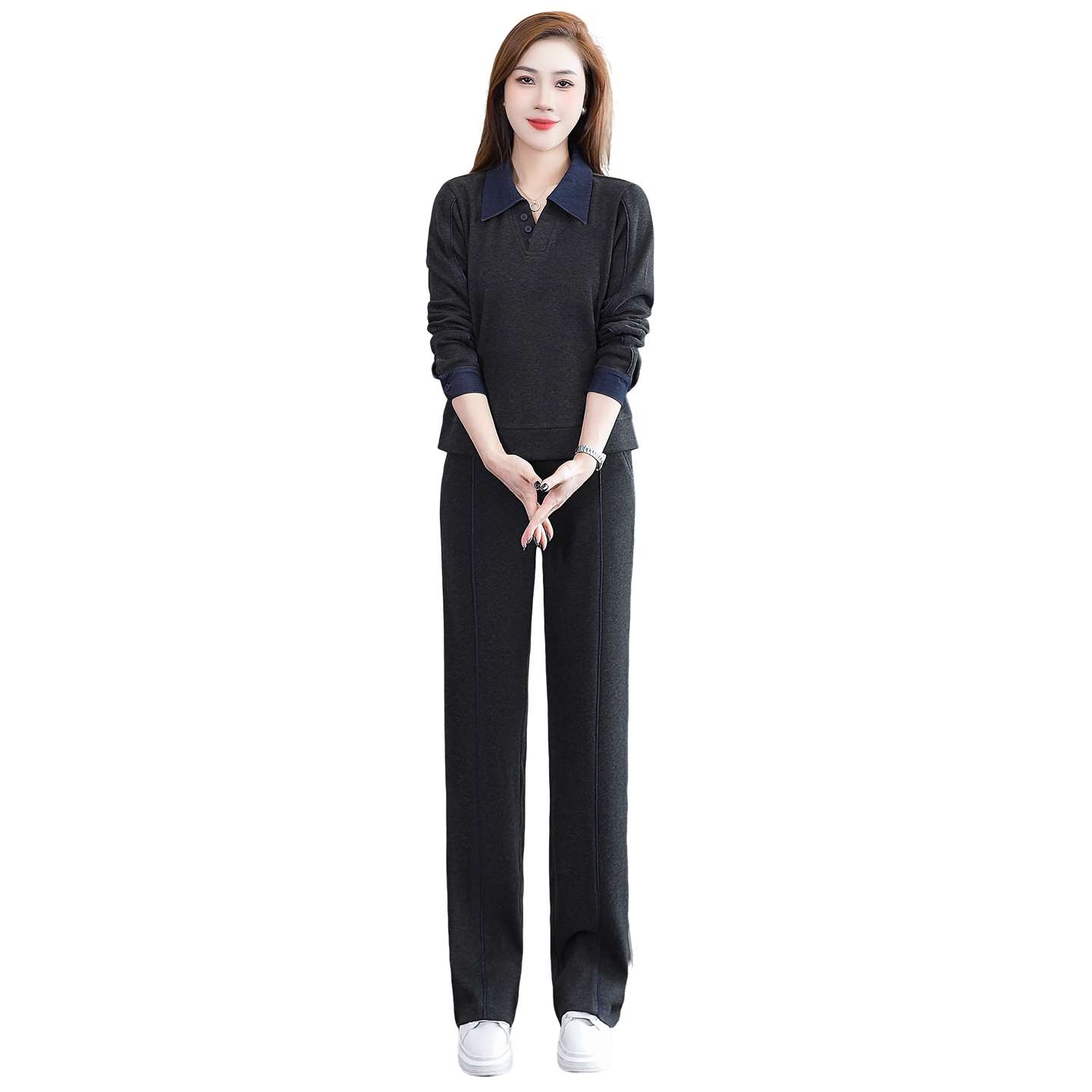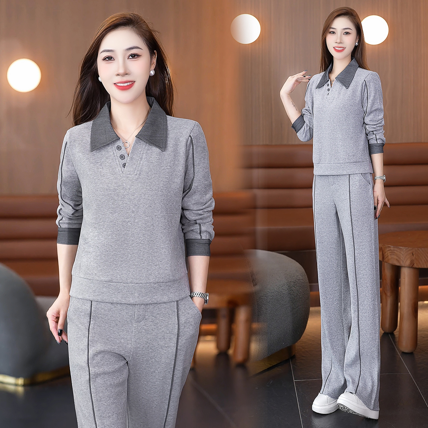 FA52244# 新品高品质春秋休闲套装女秋季新款洋气POLO衫卫衣阔腿裤显瘦两件套 服裝批發女裝批發服飾貨源