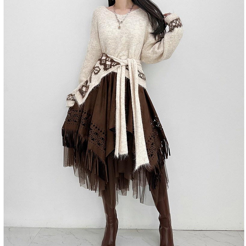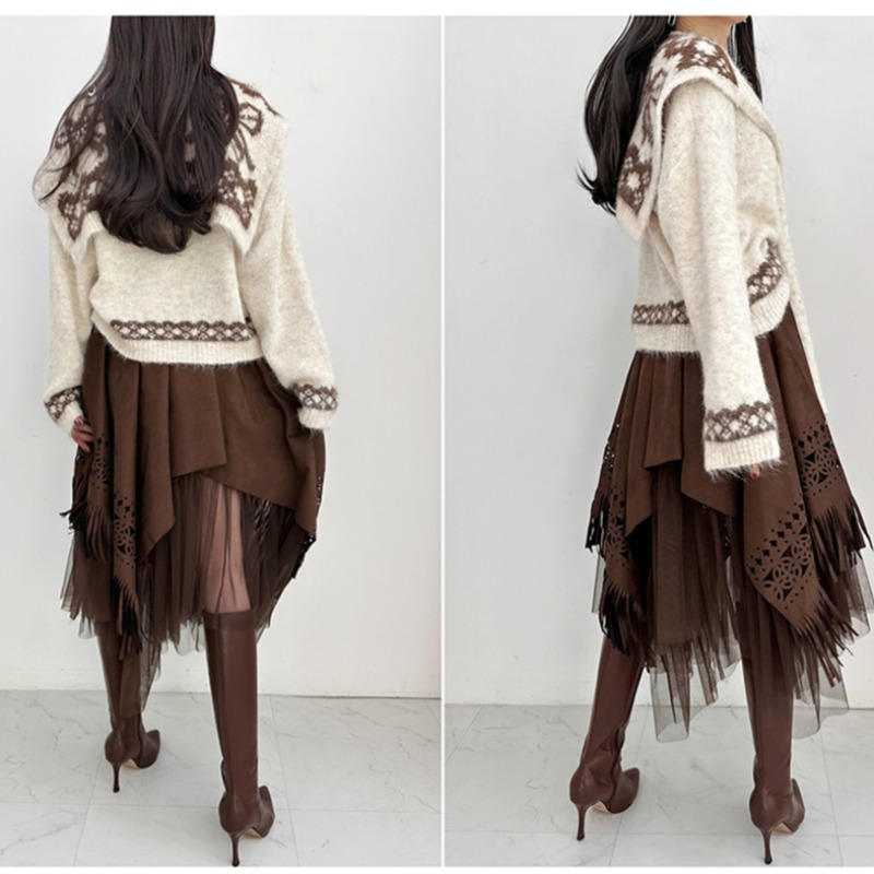 FA52407# 春季新款披肩两件套针织衫+不规则半身裙套装 服裝批發女裝批發服飾貨源