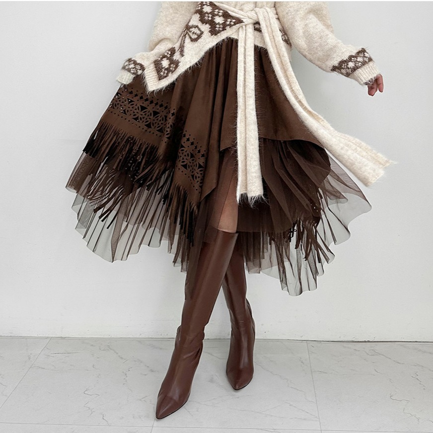 咖啡色半身裙