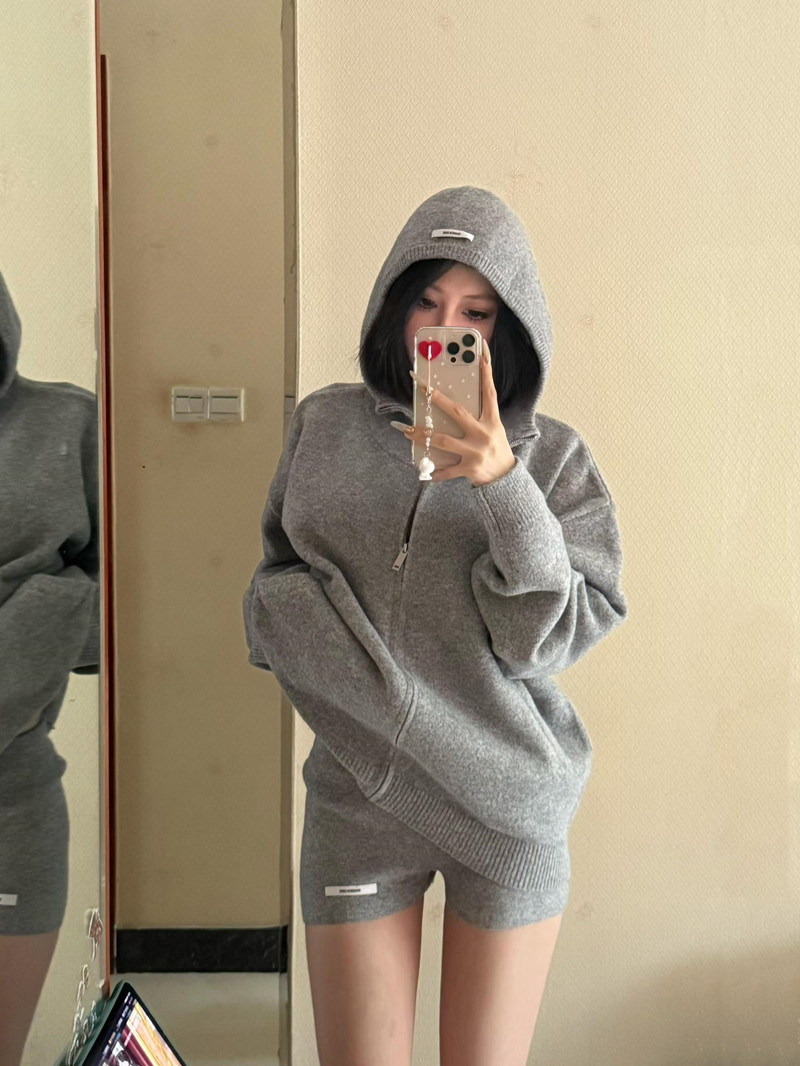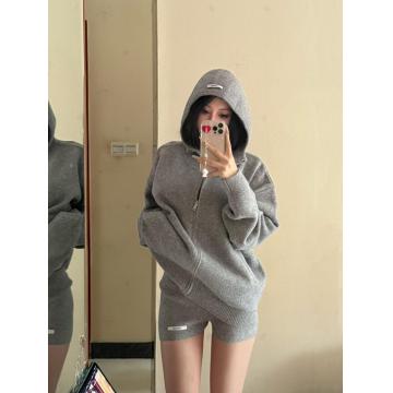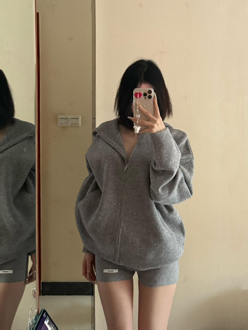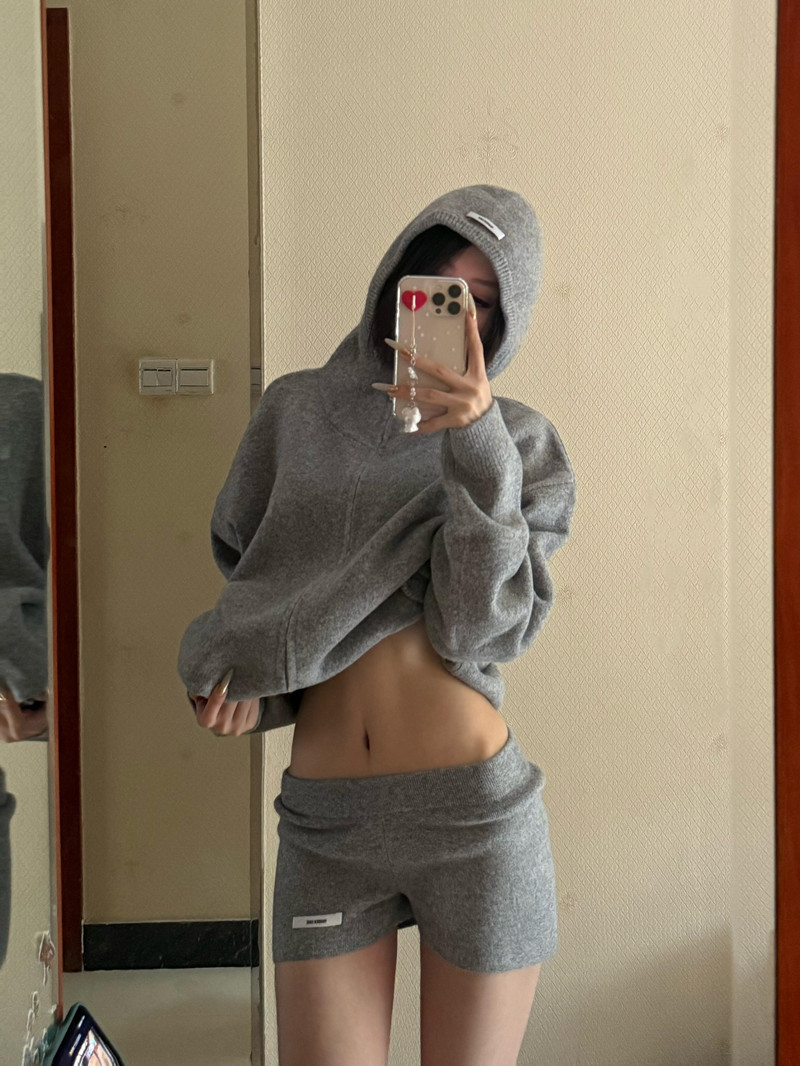 FA52513# 复古时尚套装女秋冬连帽毛衣开衫显瘦针织短裤韩版休闲洋气两件套 服裝批發女裝批發服飾貨源