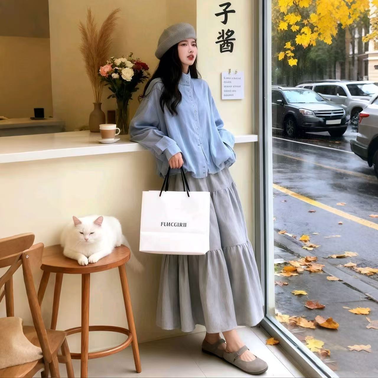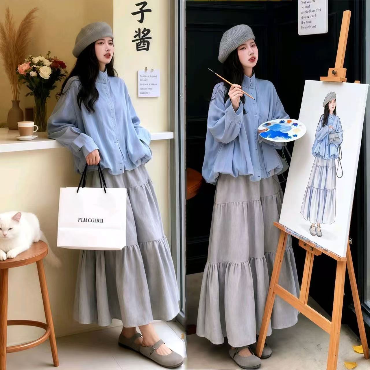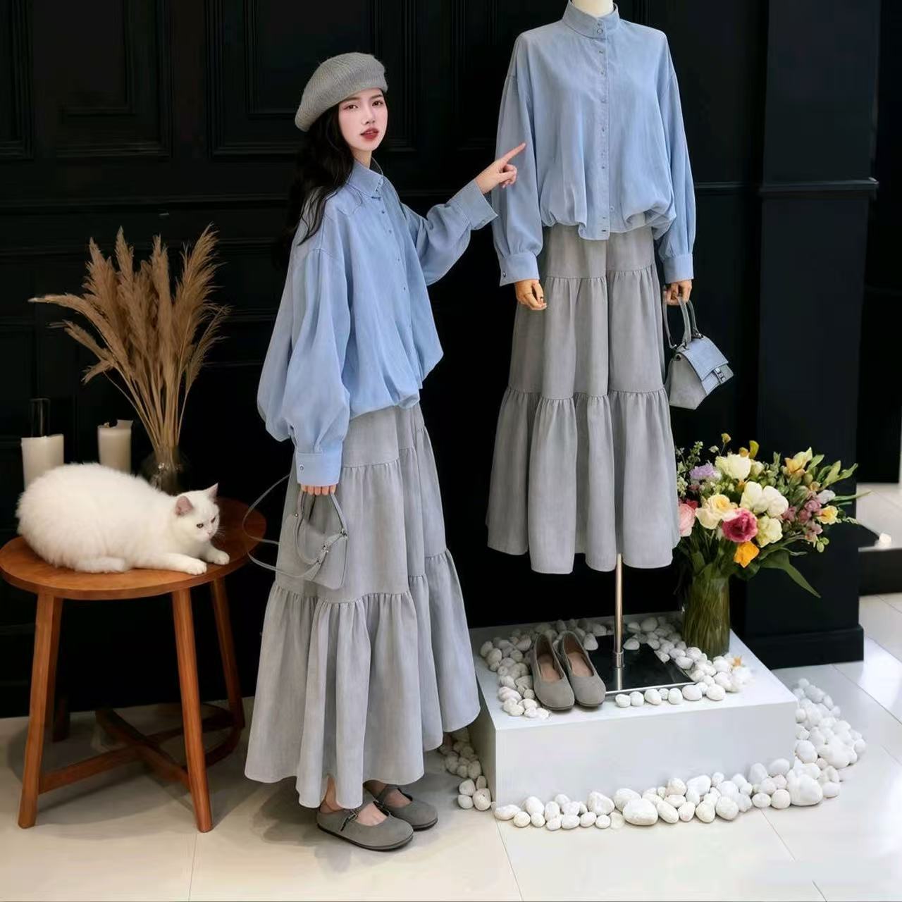 FA52543# 韩系通勤套装女秋冬新款宽松气质立领夹克外套高腰半身裙两件套潮 服裝批發女裝批發服飾貨源