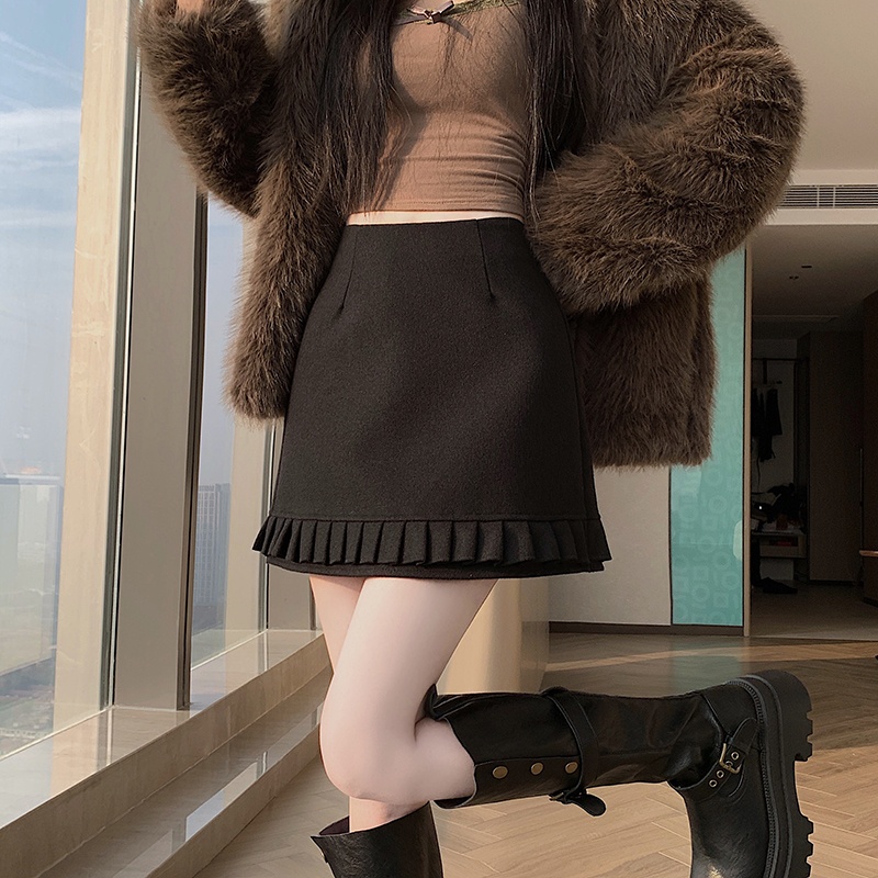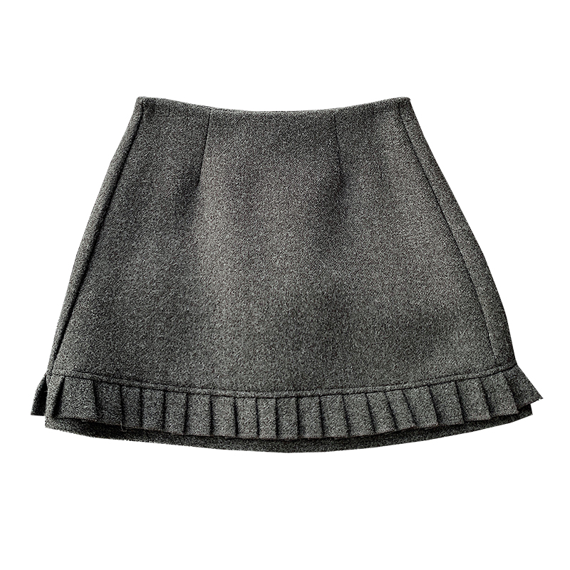 FA52557# 深灰色毛呢半身裙冬季新款超好看设计感A字短裙子 服裝批發女裝批發服飾貨源