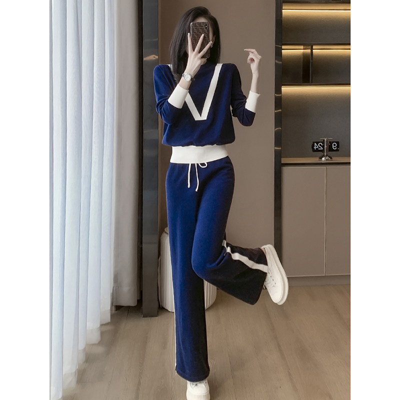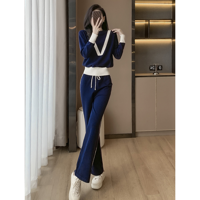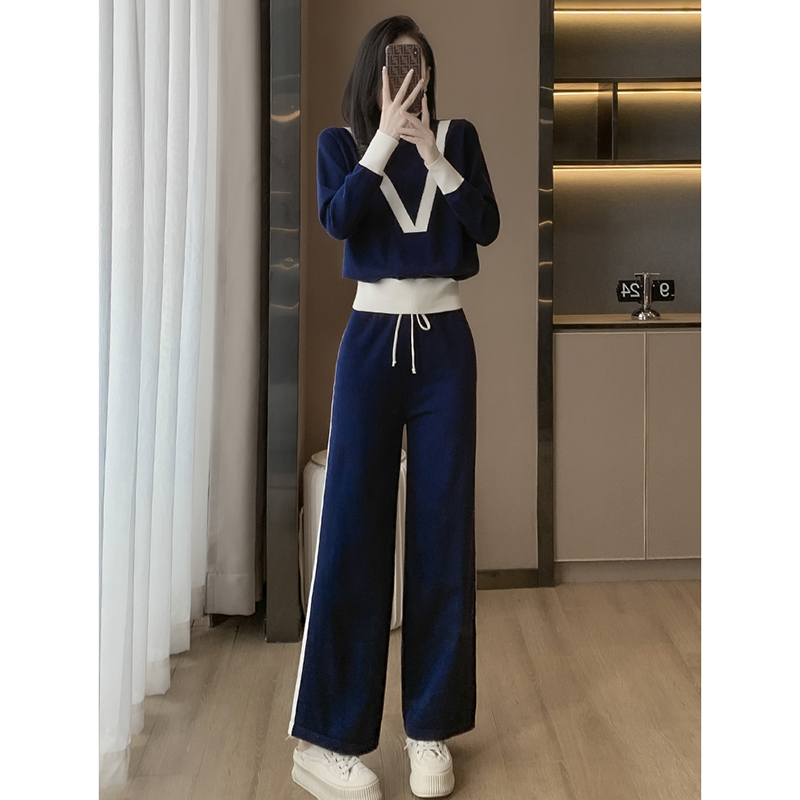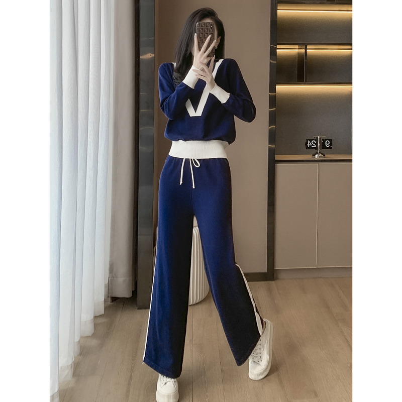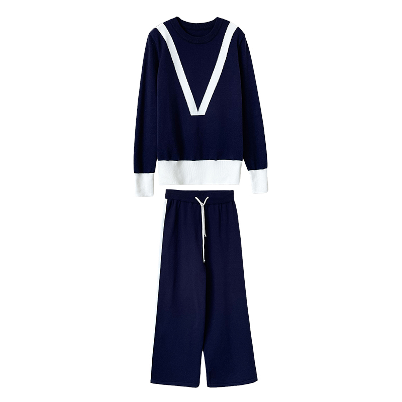 FA52828# 针织衫欧货运动休闲套装女撞色松紧腰围宽松阔腿裤 服裝批發女裝批發服飾貨源