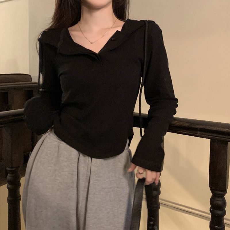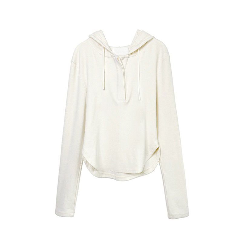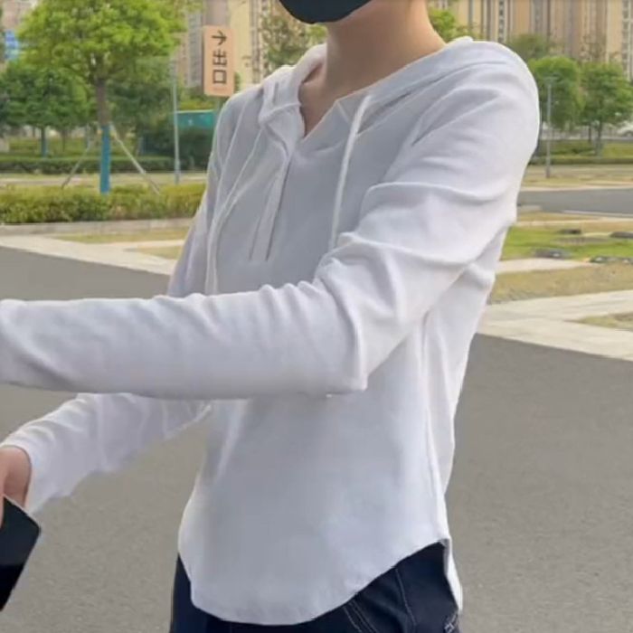 FA52916# 莫代尔长袖连帽套头长袖t恤女慵懒设计感打底衫 服裝批發女裝批發服飾貨源