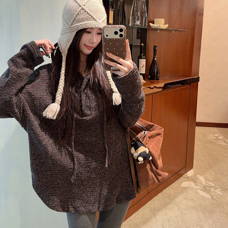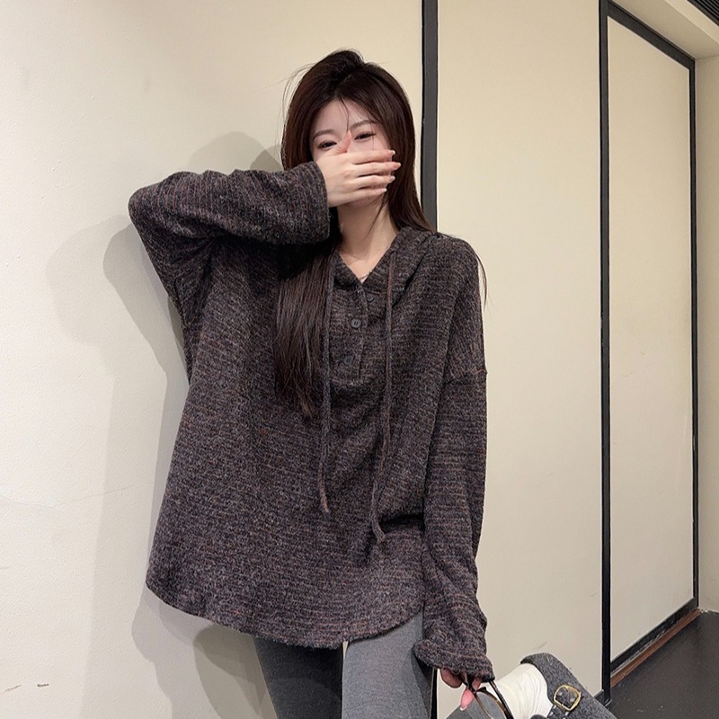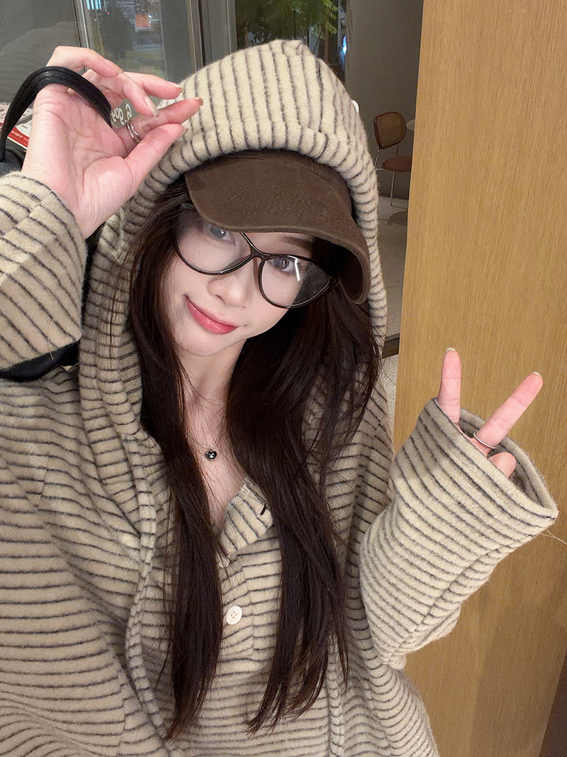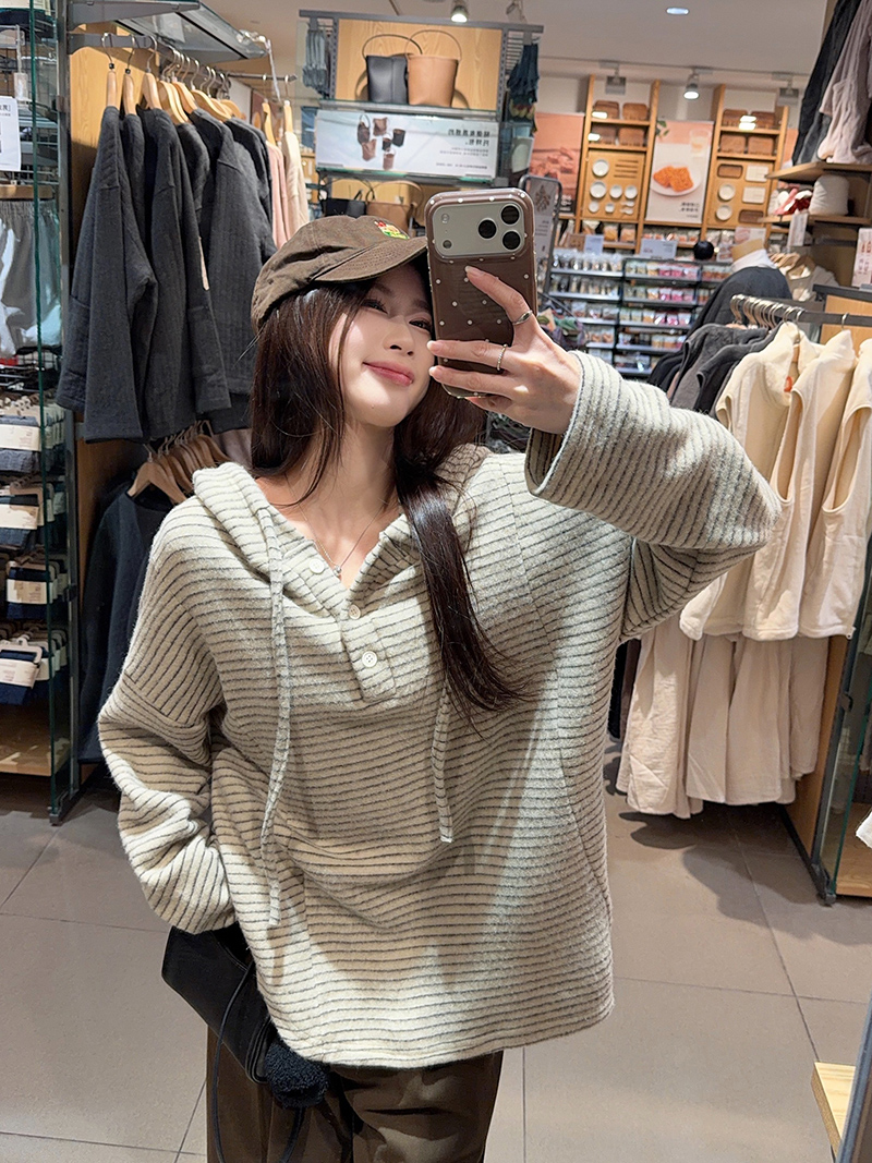 FA52925# 兔毛双面长袖t恤打底衫女装薄美式条纹春秋连帽上衣 服裝批發女裝批發服飾貨源