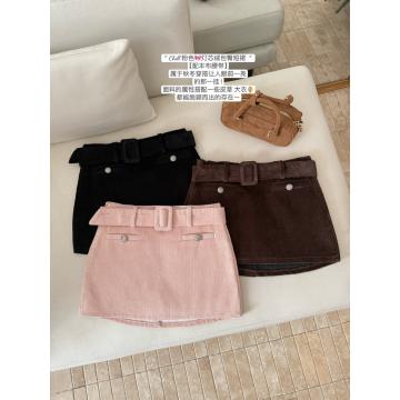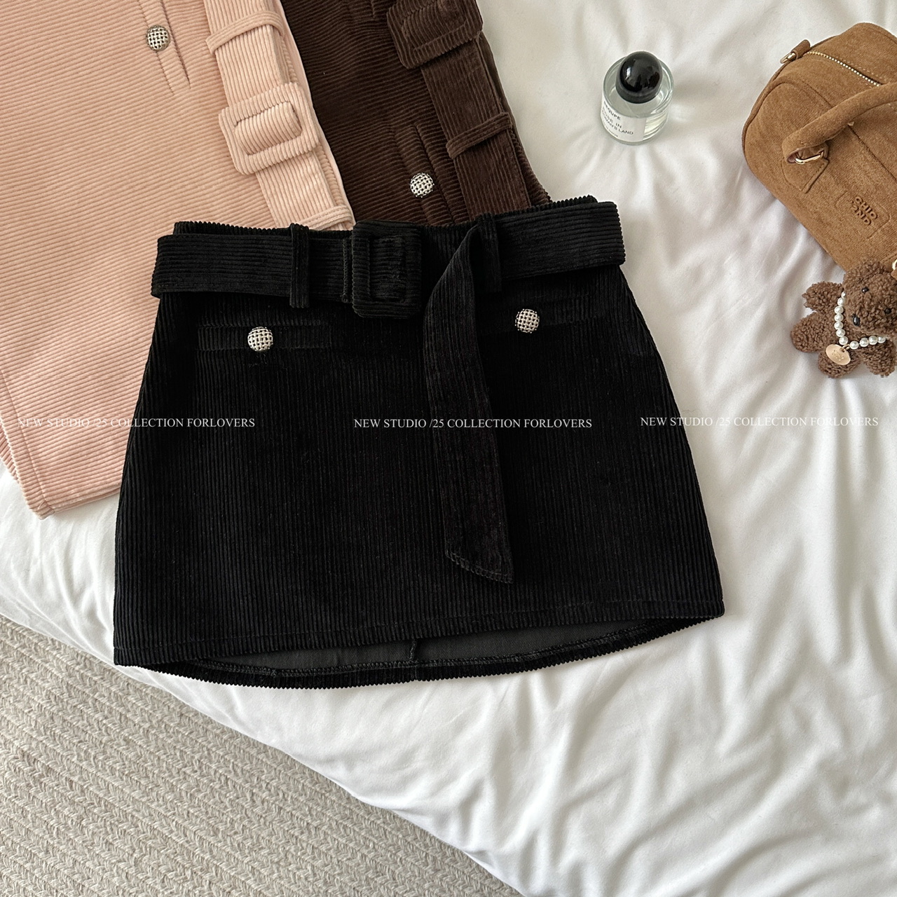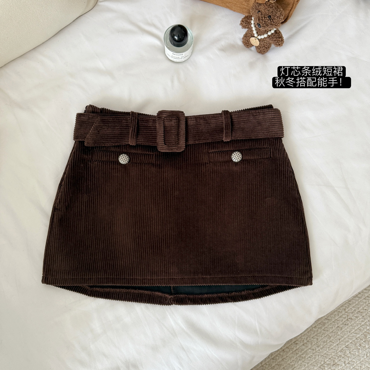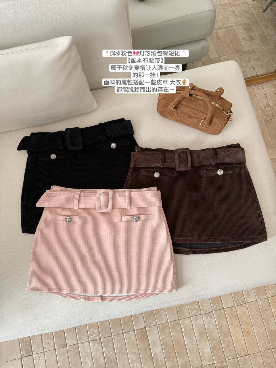 FA53168# 粉色灯芯绒半身裙女冬季miu系甜美纯欲风a字裙包臀裙 服裝批發女裝批發服飾貨源