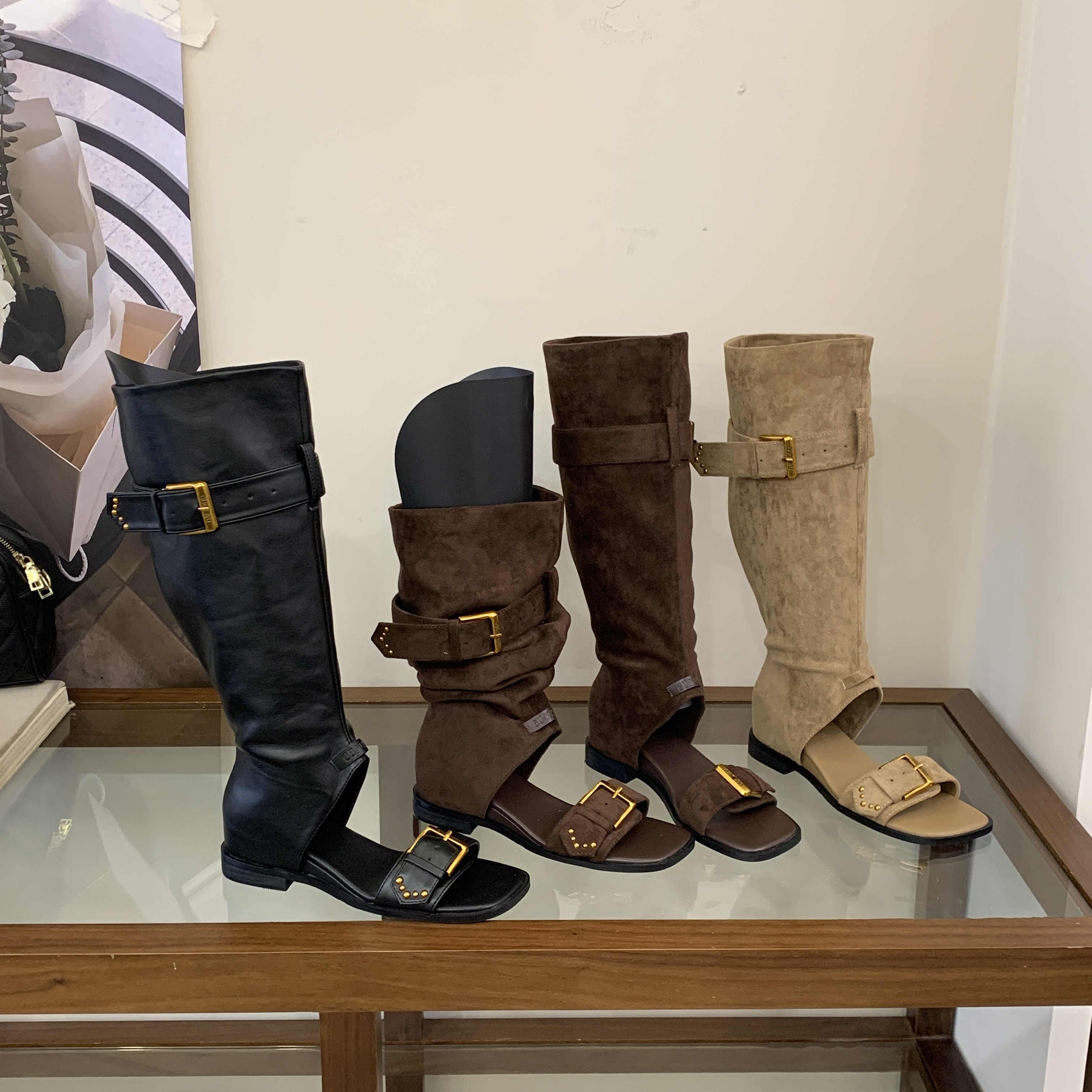X-33097# 新款时尚百搭时装靴女不过膝长靴高筒靴堆堆靴镂空露趾凉鞋靴 鞋子批发女鞋批发凉鞋货源