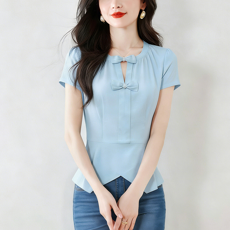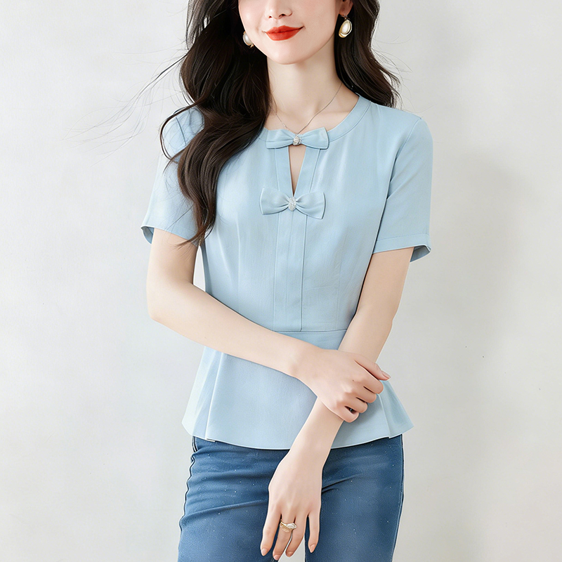 BY15121# t恤真丝上衣洋气大码女装新款时尚纯色小衫 服裝批發女裝批發服飾貨源