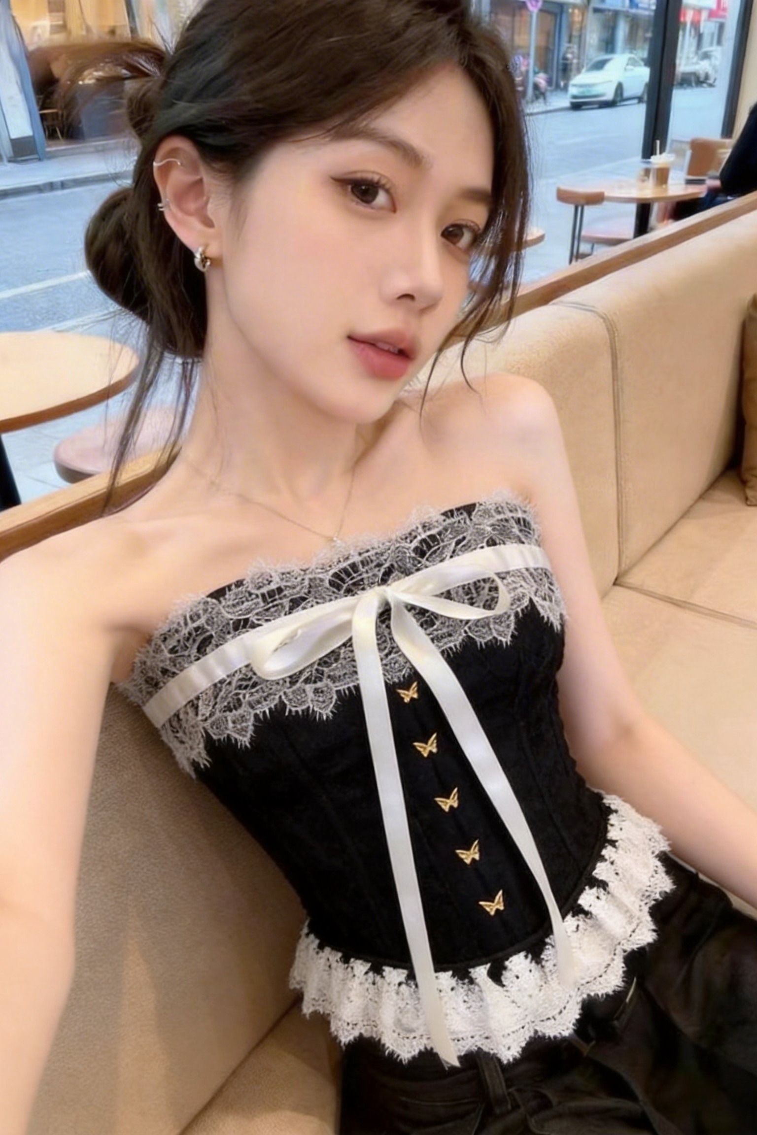 BY15230# 法式甜辣妹性感露肩吊带背心女外穿蕾丝拼接显瘦无袖短款上衣服裝批發女裝批發服飾貨源