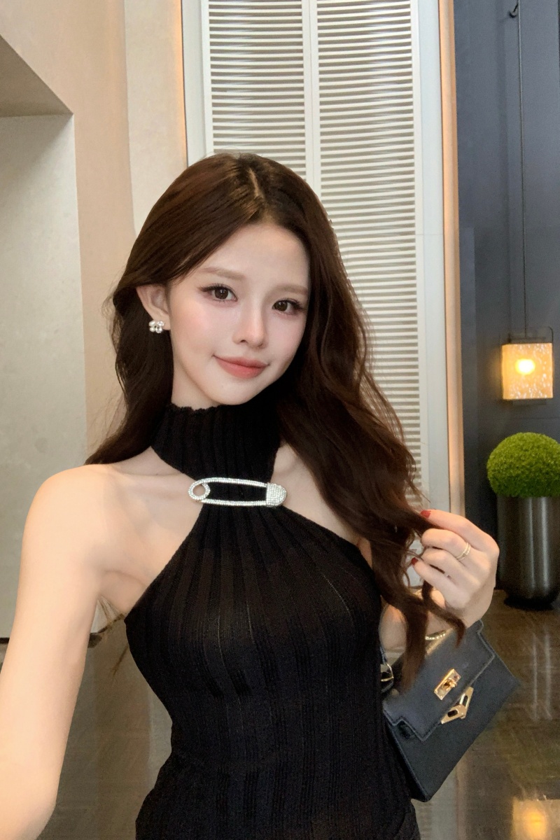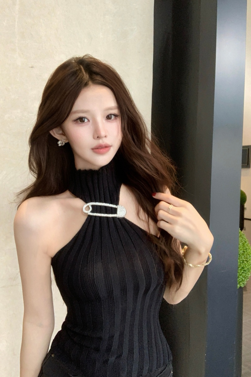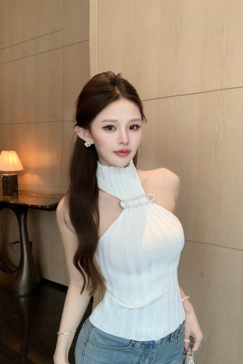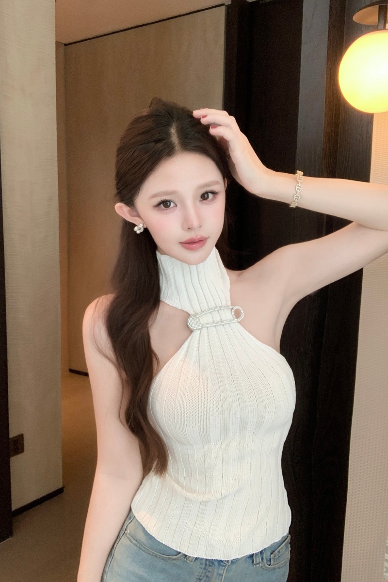 BY15660# 法式露背性感纯欲辣妹挂脖高领针织上衣修身显瘦内搭外穿背心 服裝批發女裝批發服飾貨源