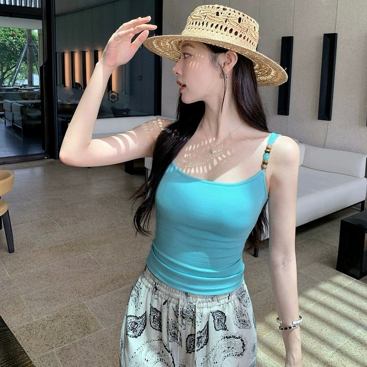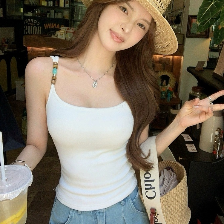 BY15748# 文胸一体法式带胸垫吊带背心女外穿夏季打底内搭绝美美背无袖上衣 服裝批發女裝批發服飾貨源