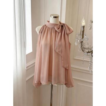 BY15799# 独特漂亮设计感蝴蝶结衬衫女夏季小众显瘦露肩雪纺衫 服裝批發女裝批發服飾貨源