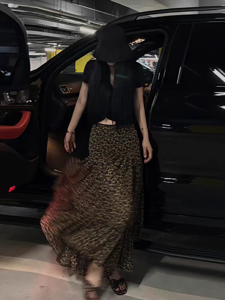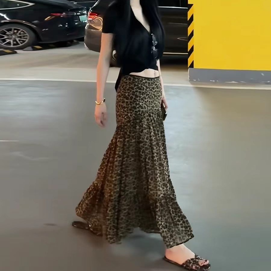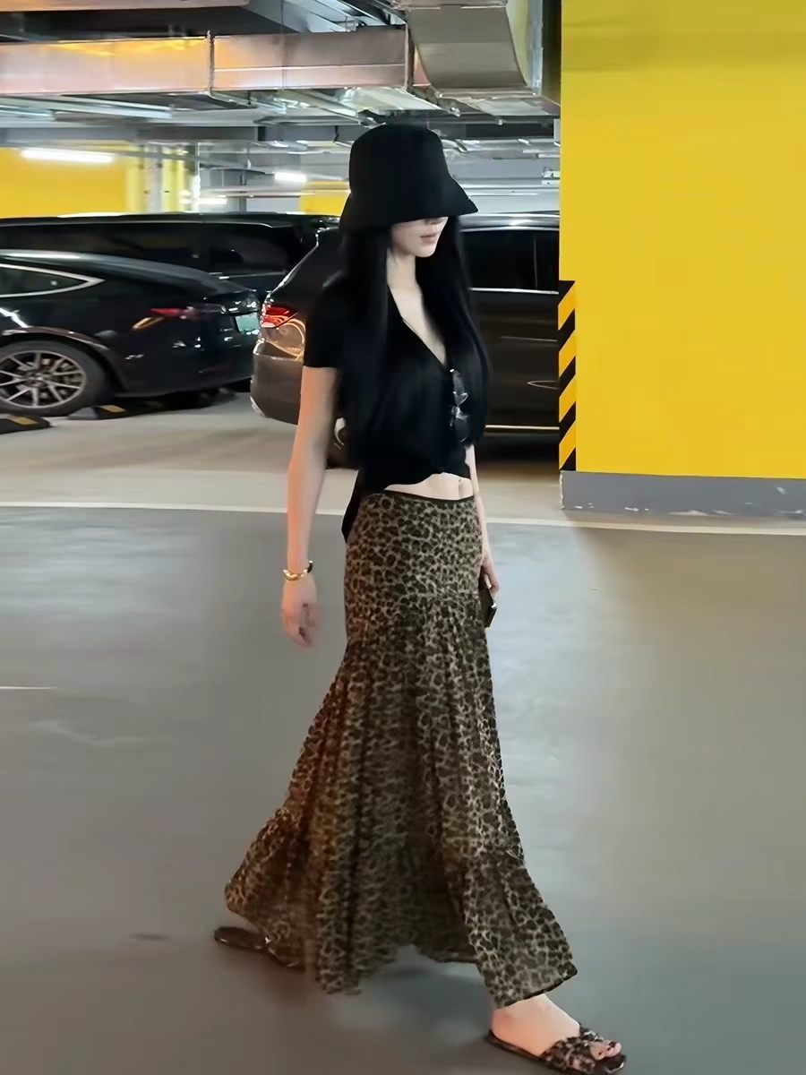 BY15806# 法式复古开叉豹纹半身裙女夏季新款甜酷辣妹风低腰包臀中长裙 服裝批發女裝批發服飾貨源