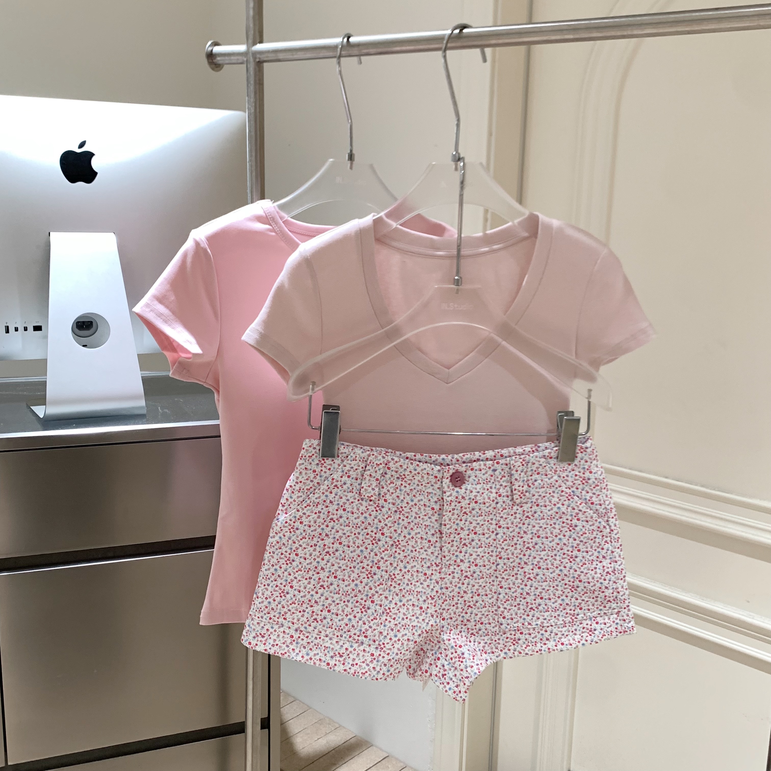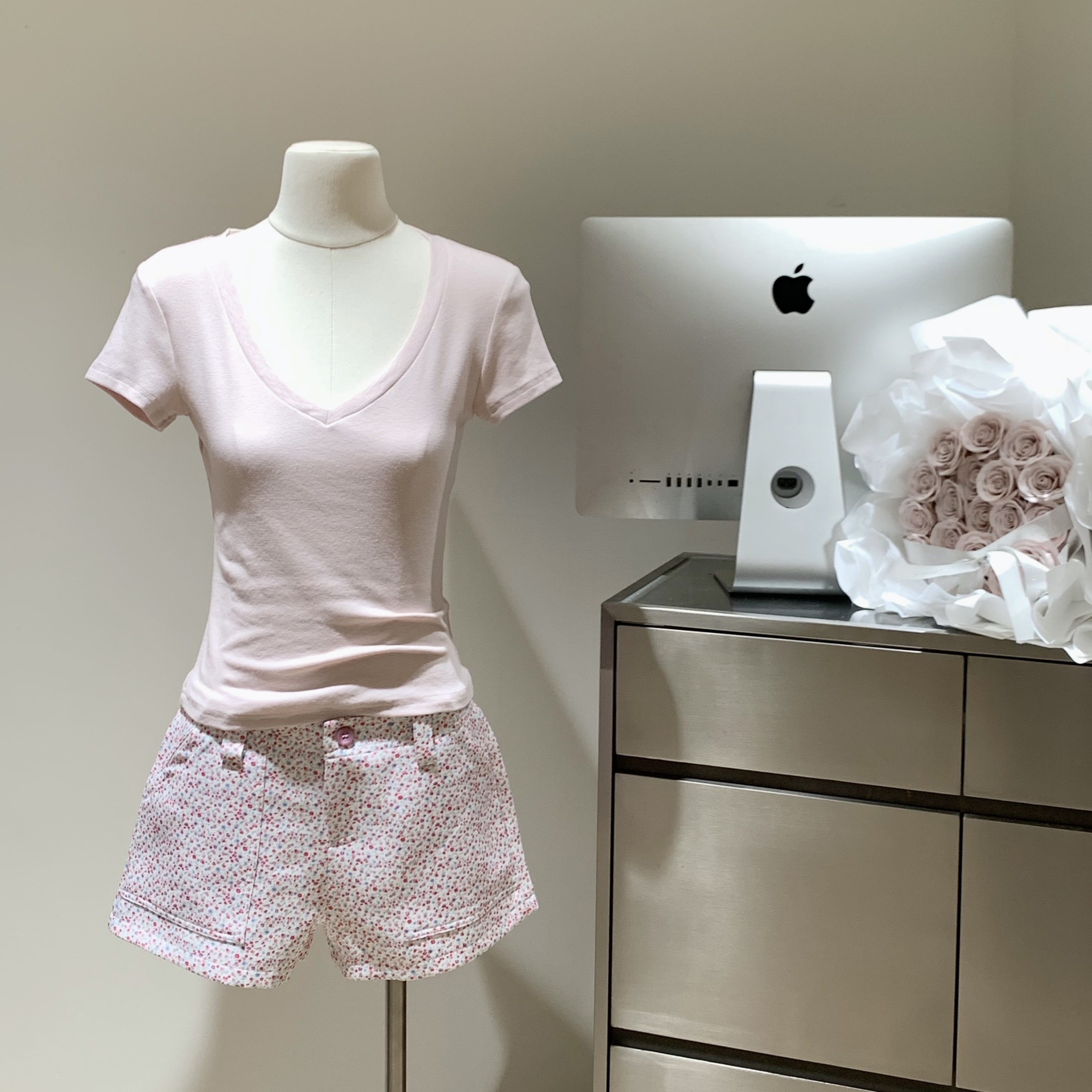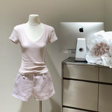 BY15949# 蘑糯糯同款粉色花色短裤女休闲设计感清新碎花热裤 服裝批發女裝批發服飾貨源