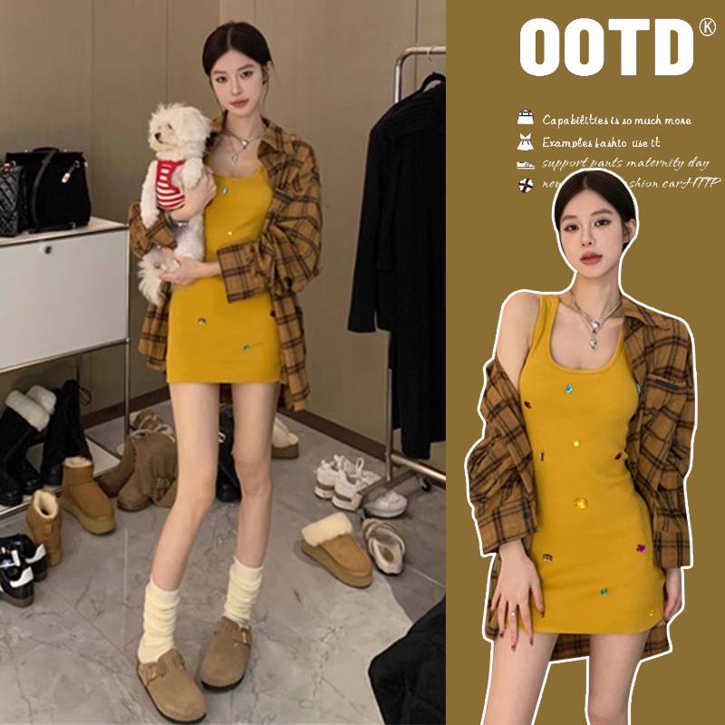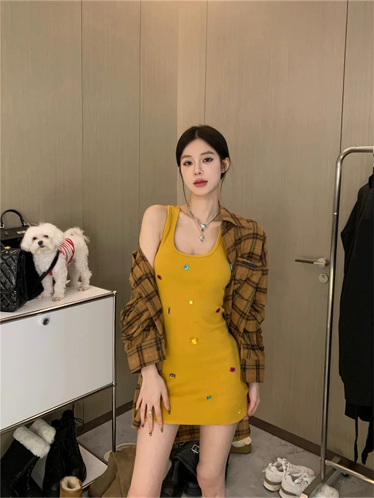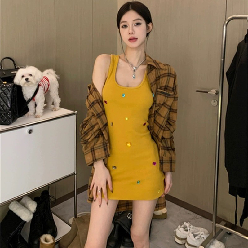 BY16175# 大码女装气质吊带连衣裙女夏季内搭高级感休闲重工钉钻无袖 服裝批發女裝批發服飾貨源