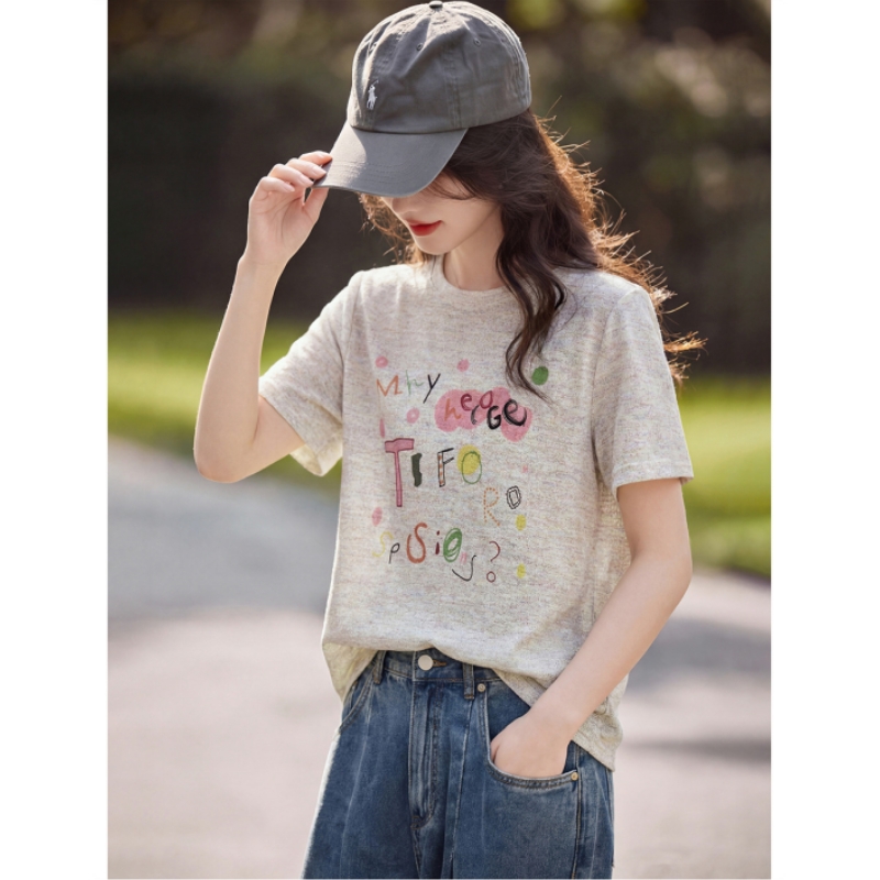 BY16504# 美式彩绘趣味涂鸦上衣26夏季时尚休闲针织印花短袖T恤 服裝批發女裝批發服飾貨源