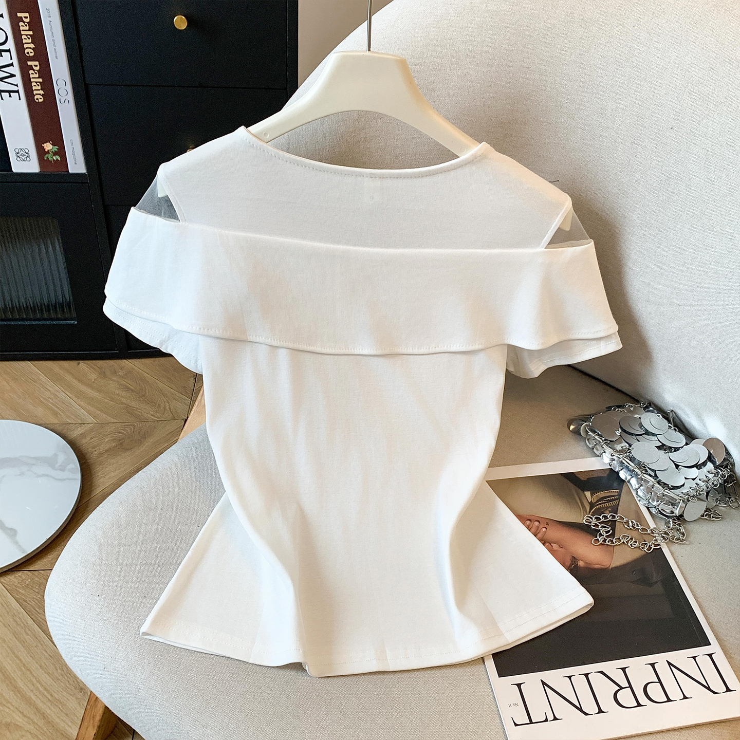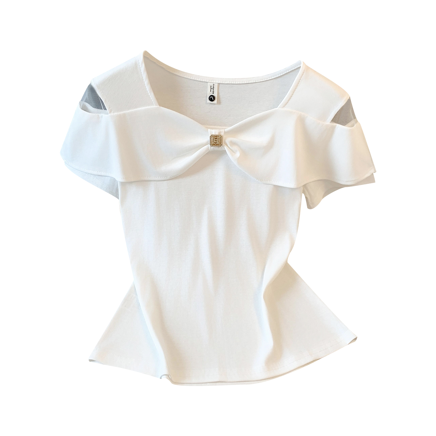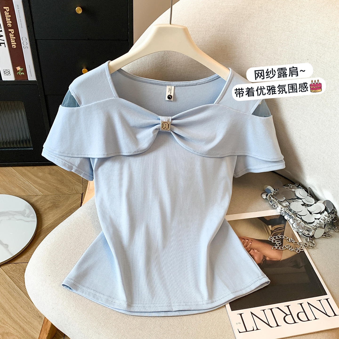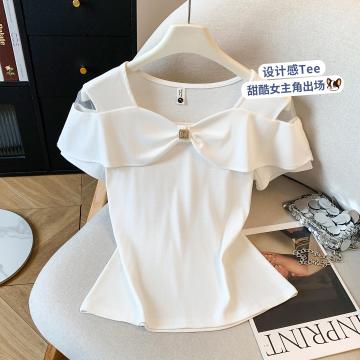 BY16550# 夏季新款女装短袖T恤时尚露肩蝴蝶结设计百搭气质上衣 服裝批發女裝批發服飾貨源