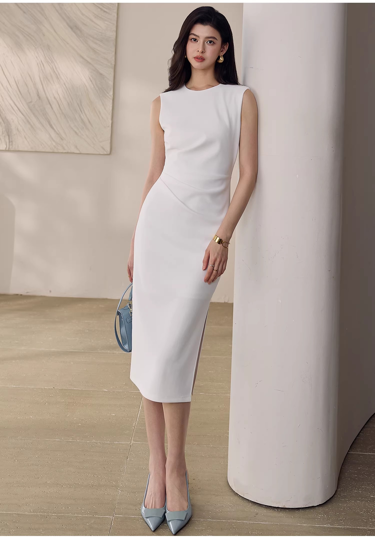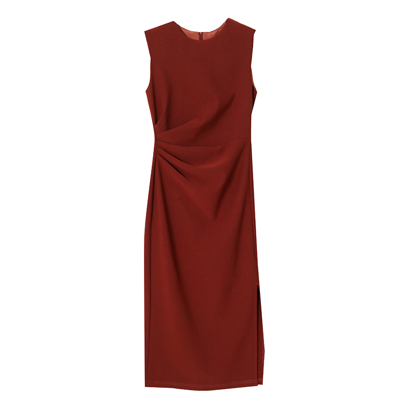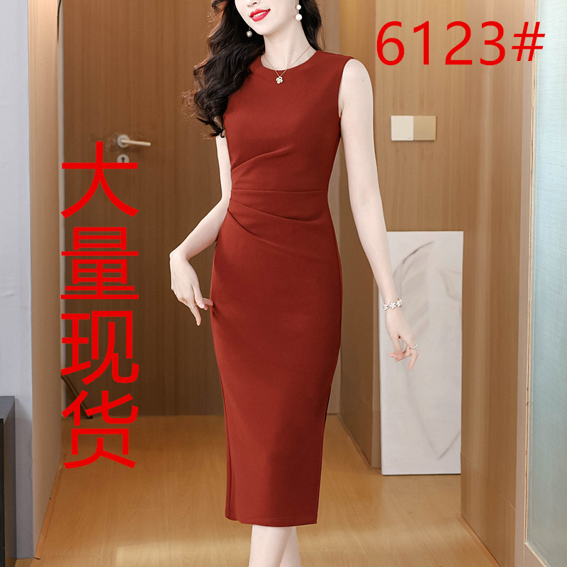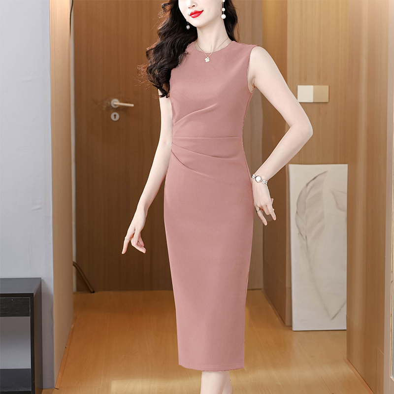 轻熟气质风收腰无袖连衣裙女春季深蓝侧开叉包臀中长裙 服裝批發女裝批發服飾貨源
