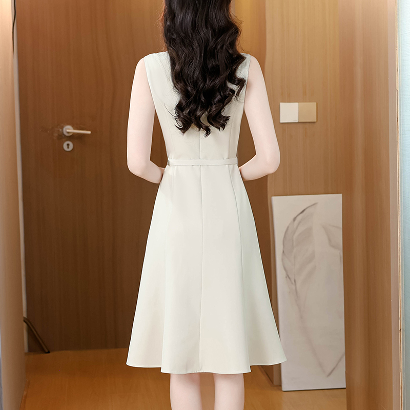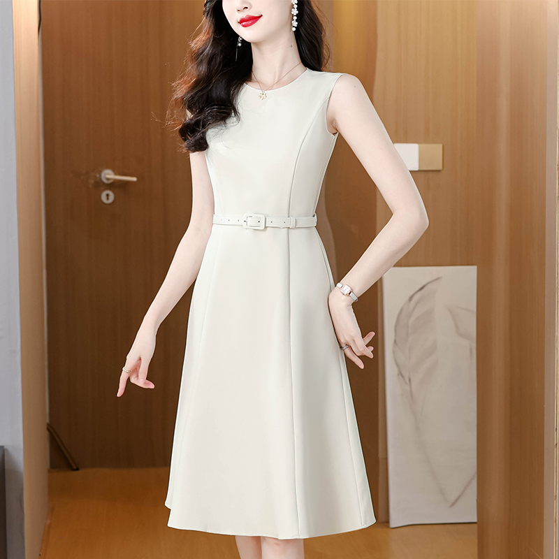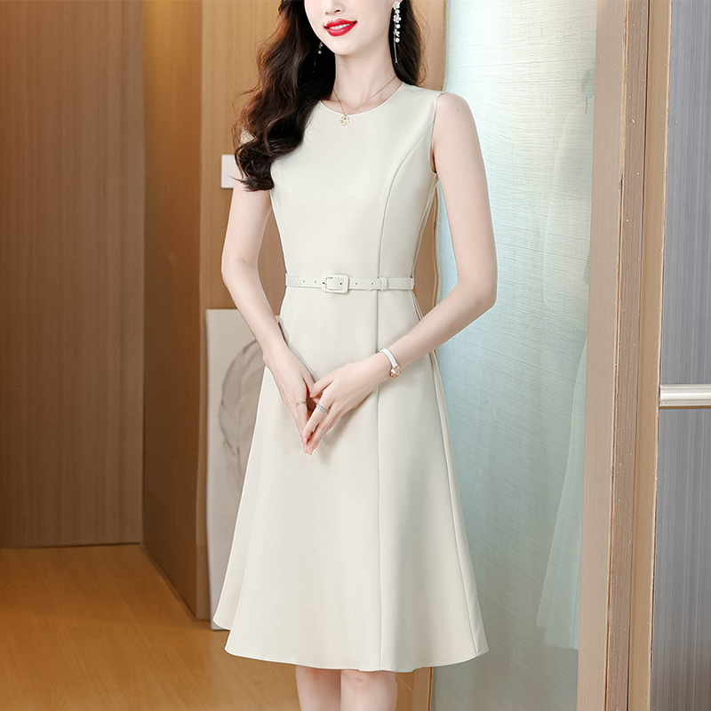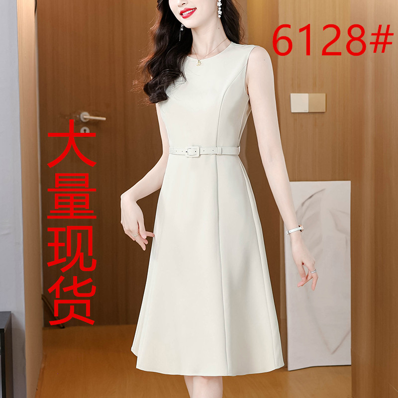 春季新款通勤无袖连衣裙收腰职业A字裙女 服裝批發女裝批發服飾貨源