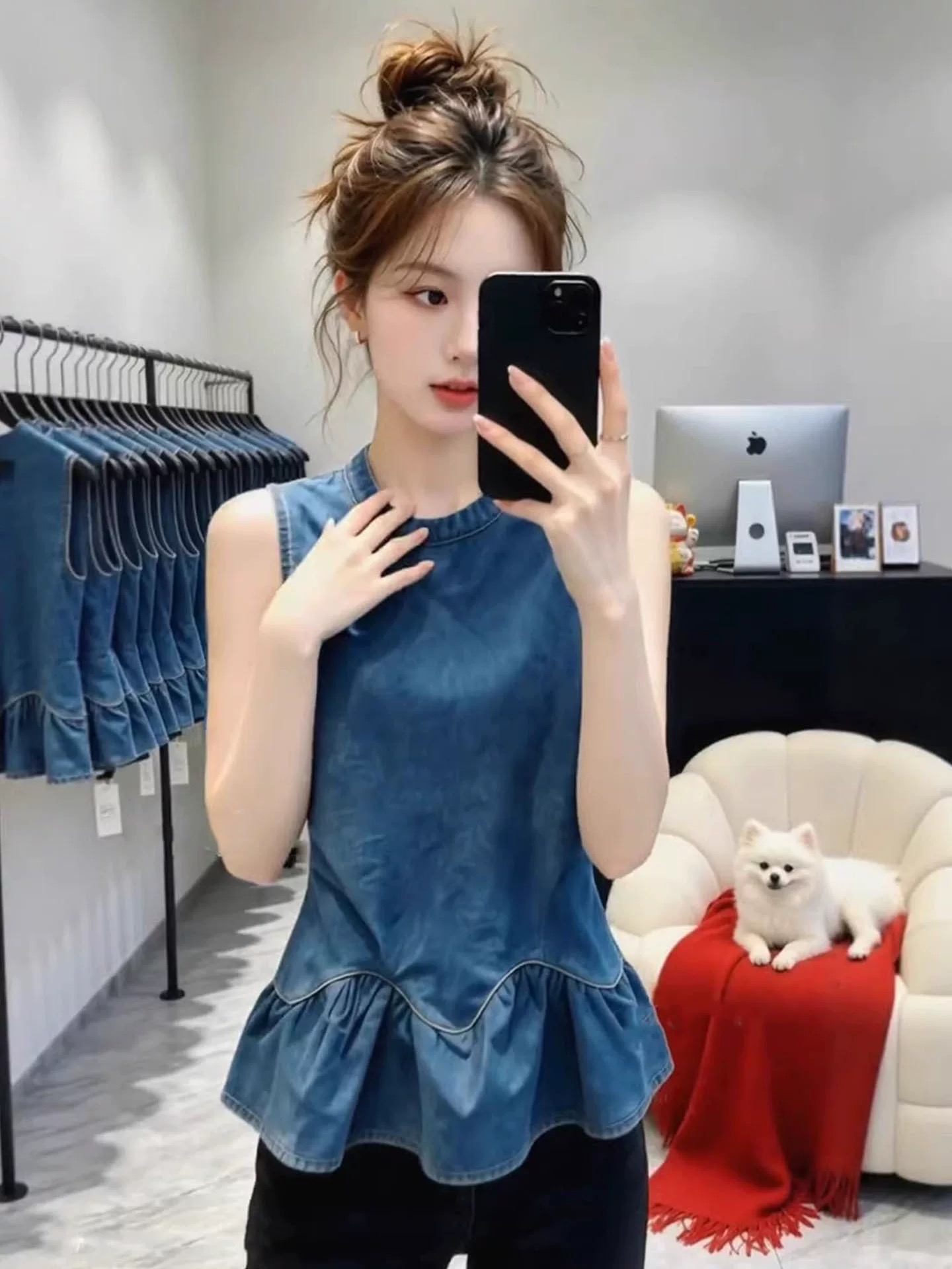 小个子气质百搭坎肩马甲女夏季新款休闲百搭牛仔背心短上衣 服裝批發女裝批發服飾貨源
