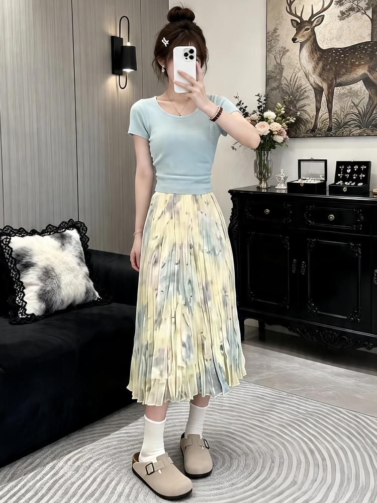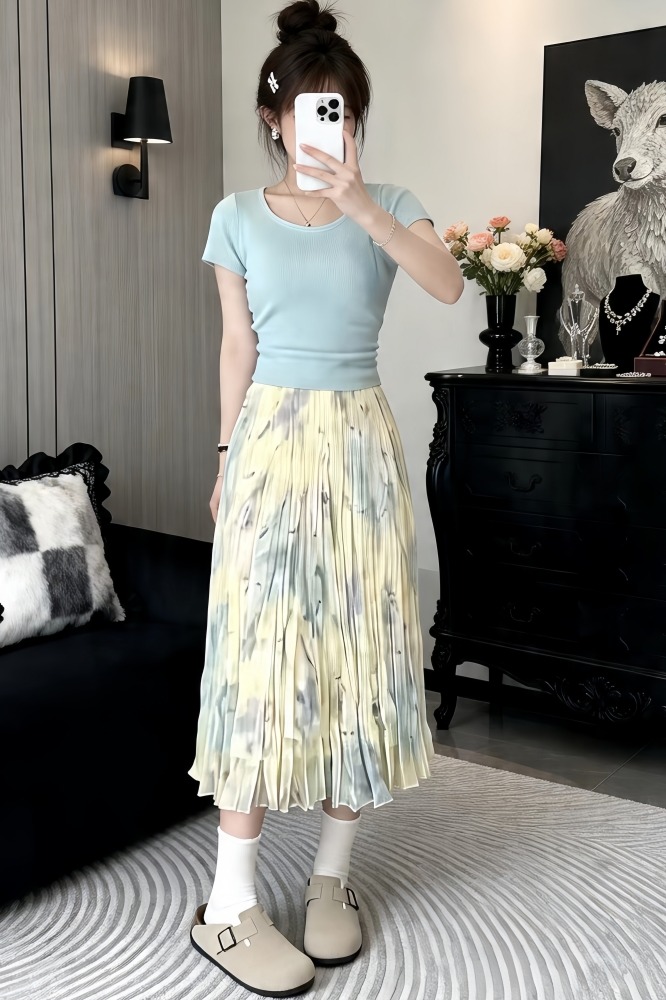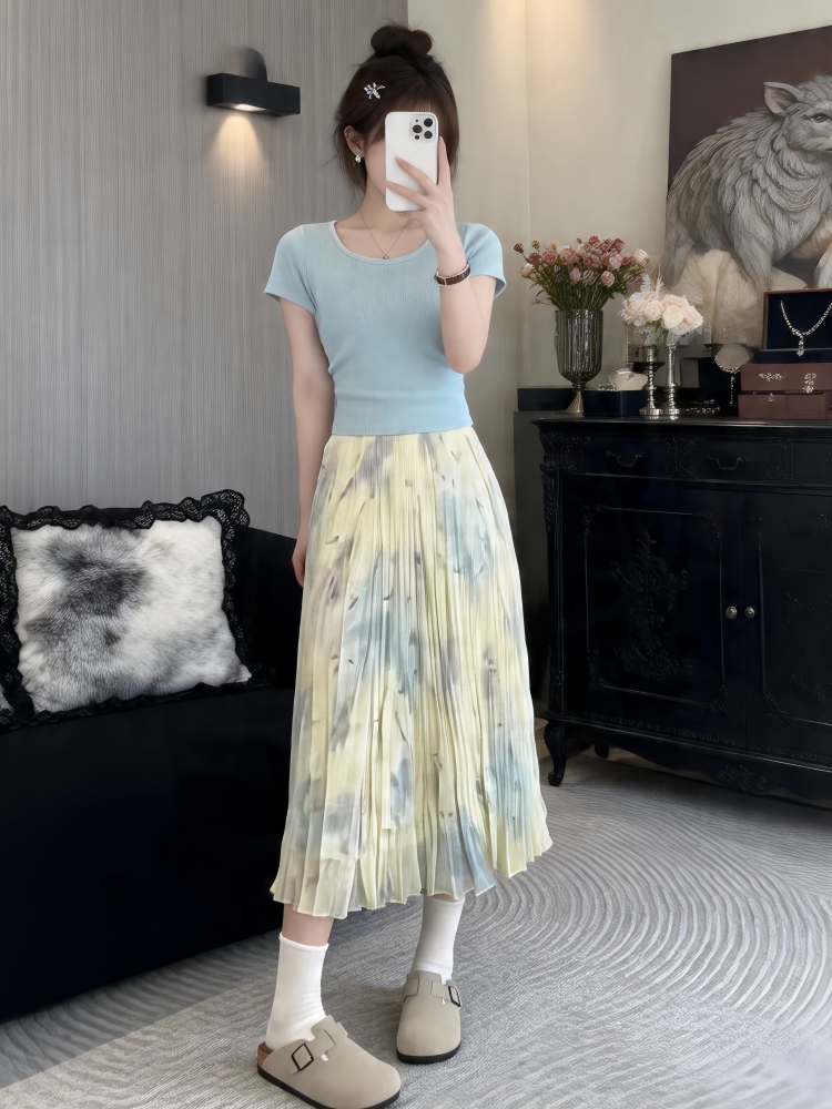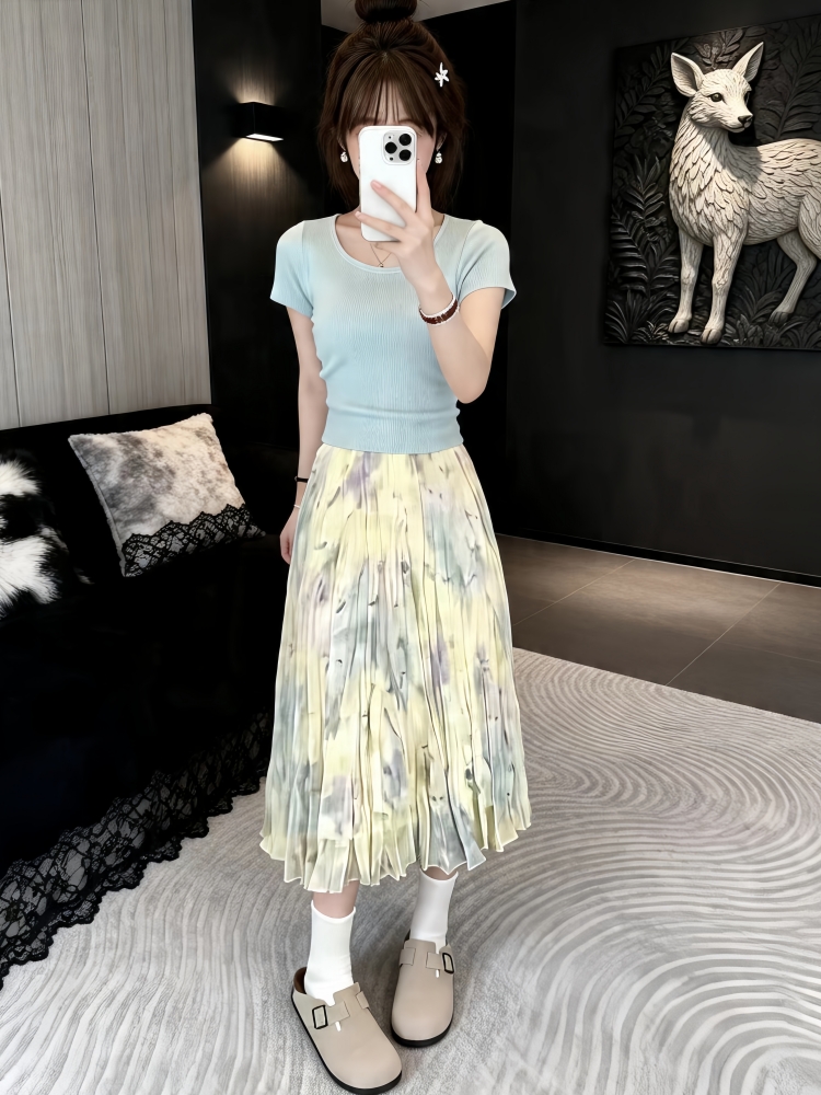 BY17680# 新款夏季轻熟小众不撞款独特绝美小个子短袖上衣半身裙两件套 服裝批發女裝批發服飾貨源