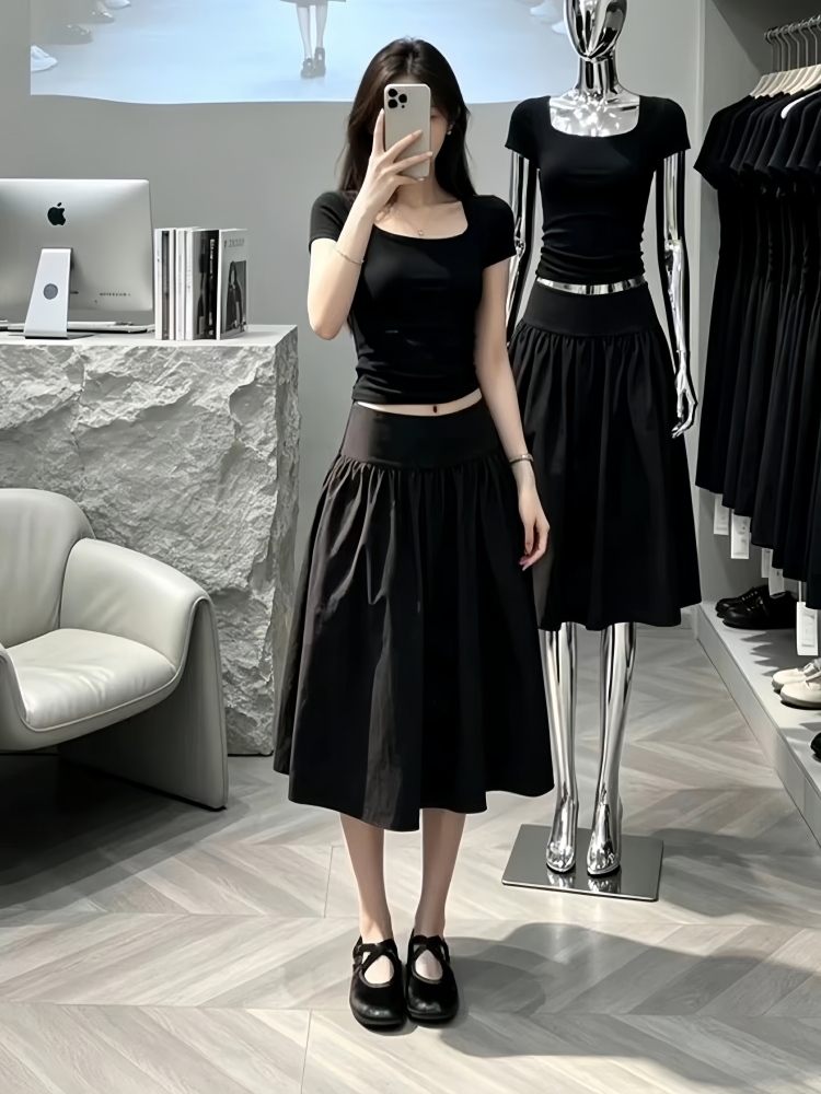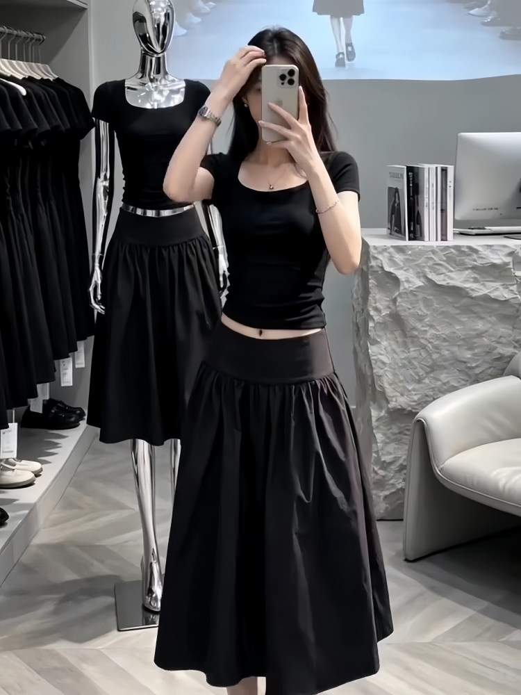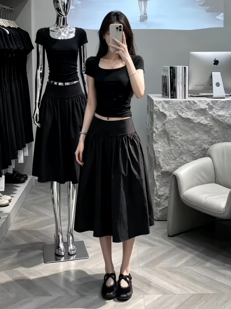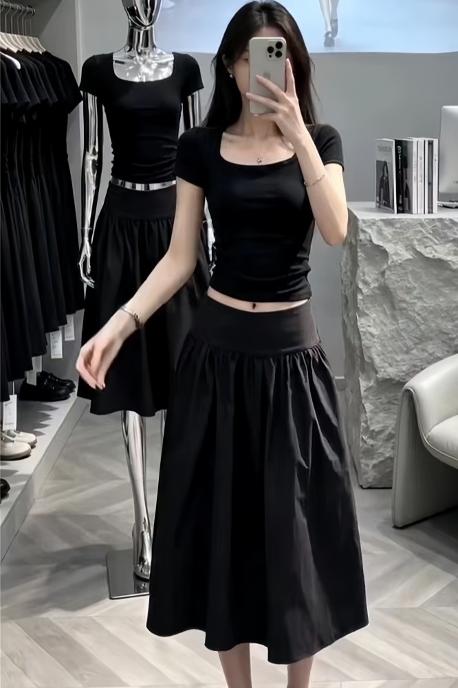 夏季修身t恤上衣高腰半裙两件套新款独特漂亮绝美小套装 服裝批發女裝批發服飾貨源