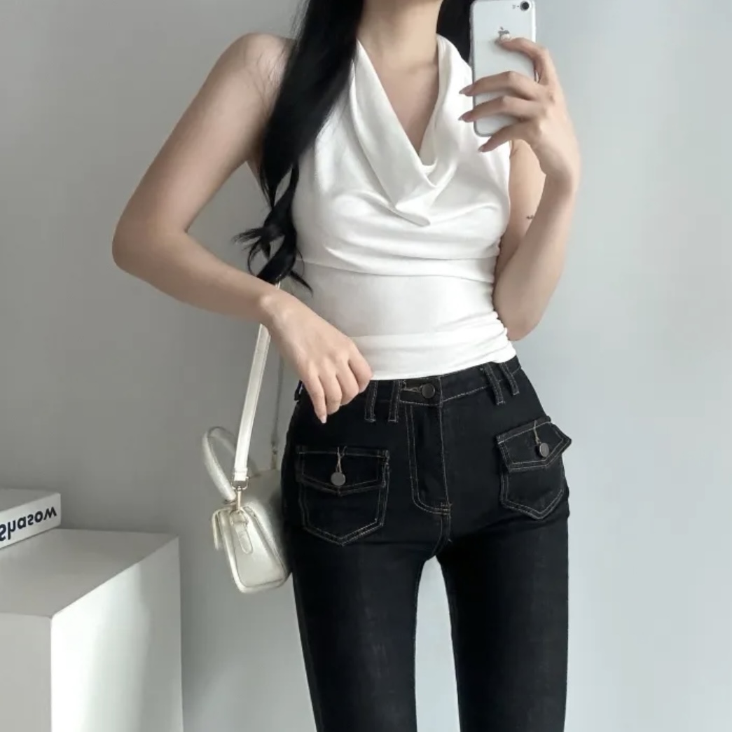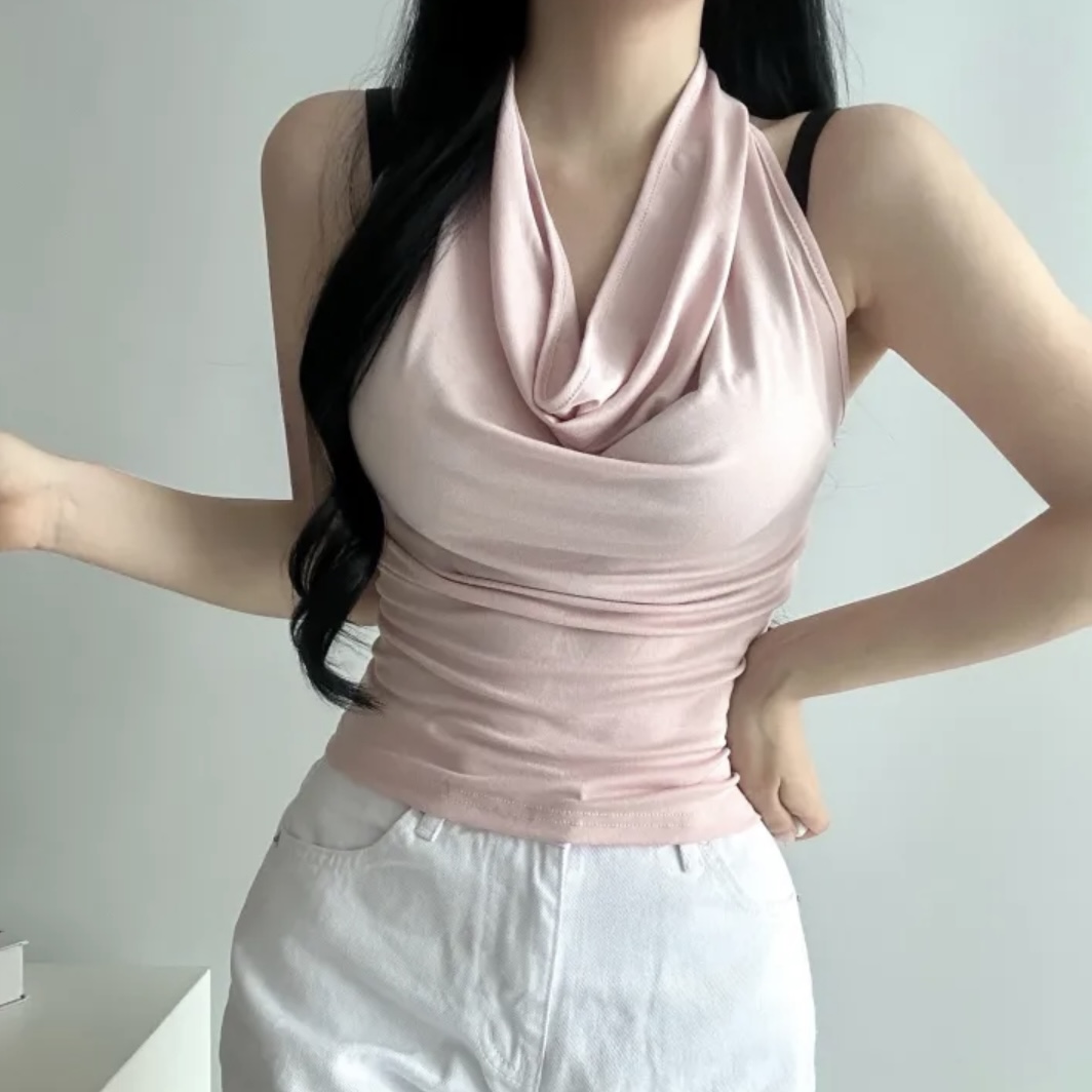 BY17707# 韩国chic荡领挂脖吊带背心无袖修身露骨套头上衣 服裝批發女裝批發服飾貨源