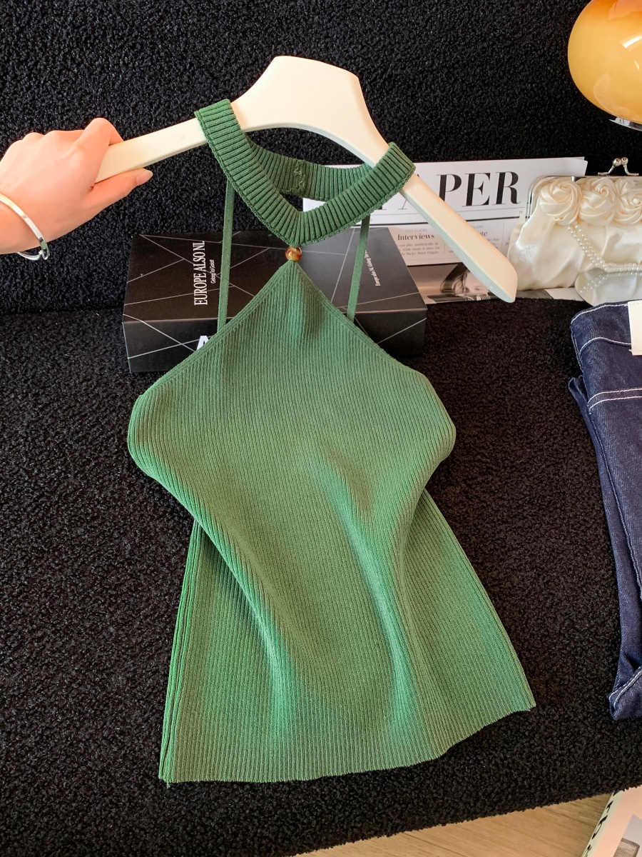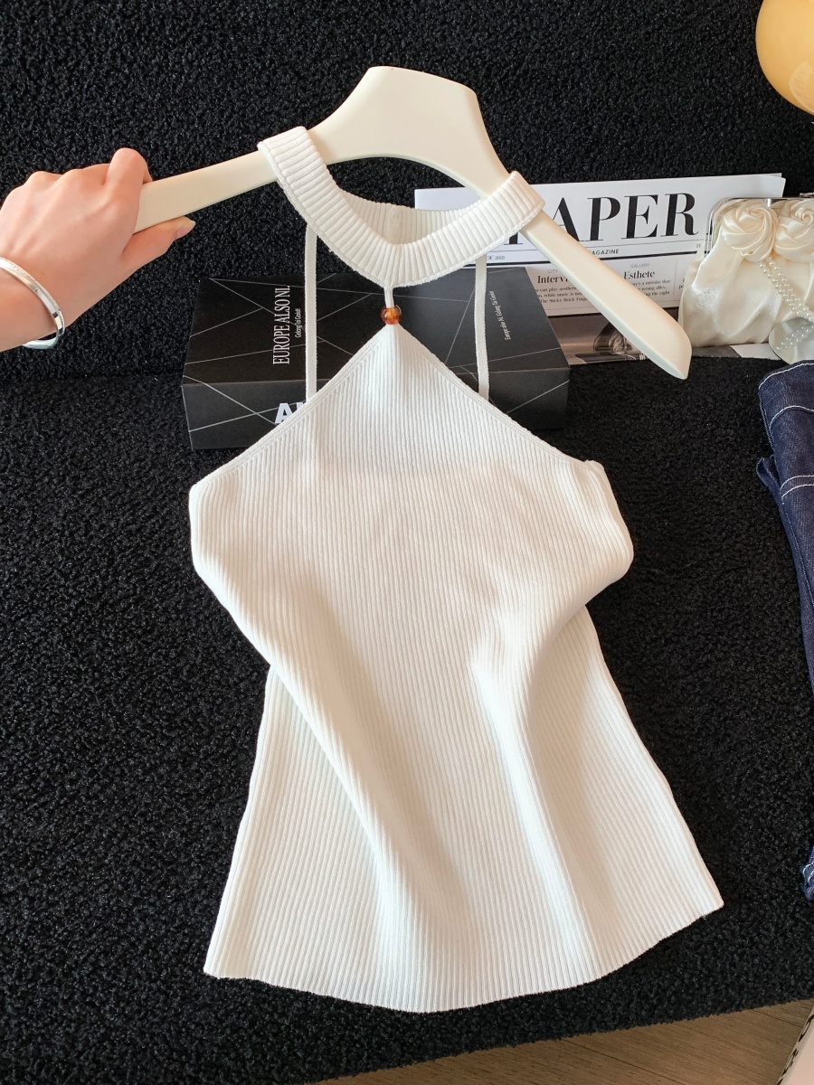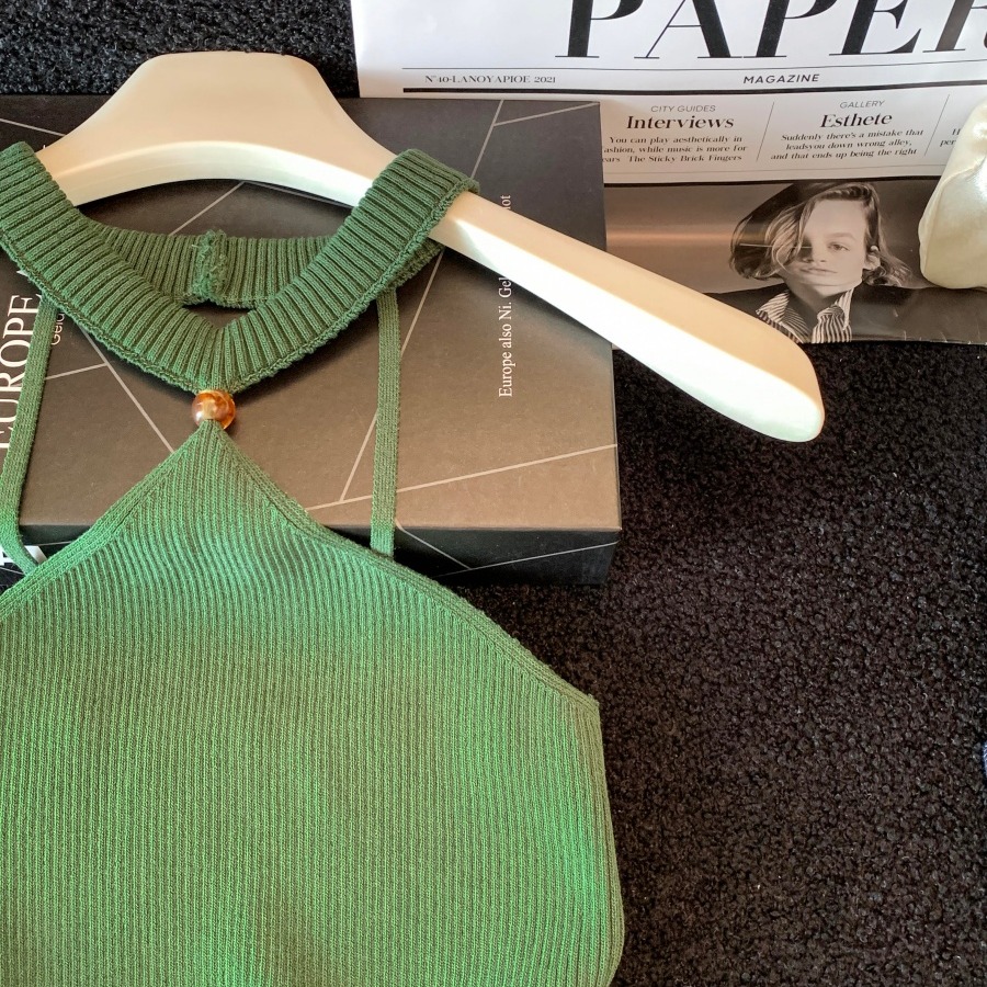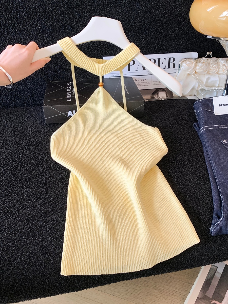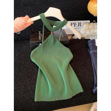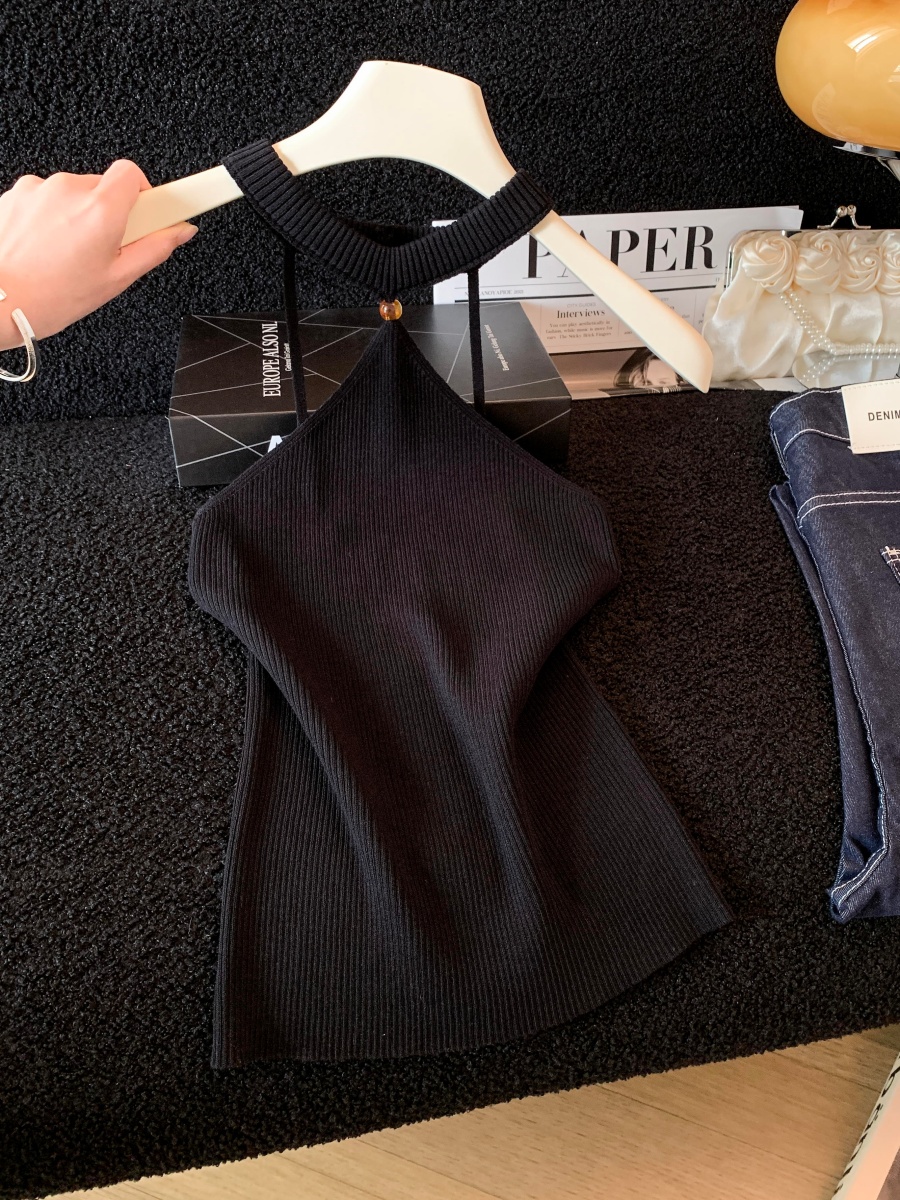 BY17769# 夏季修身显瘦短款无袖绝美上衣性感辣妹巨好看挂脖针织吊带背心 服裝批發女裝批發服飾貨源