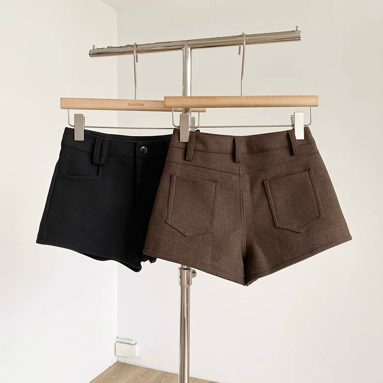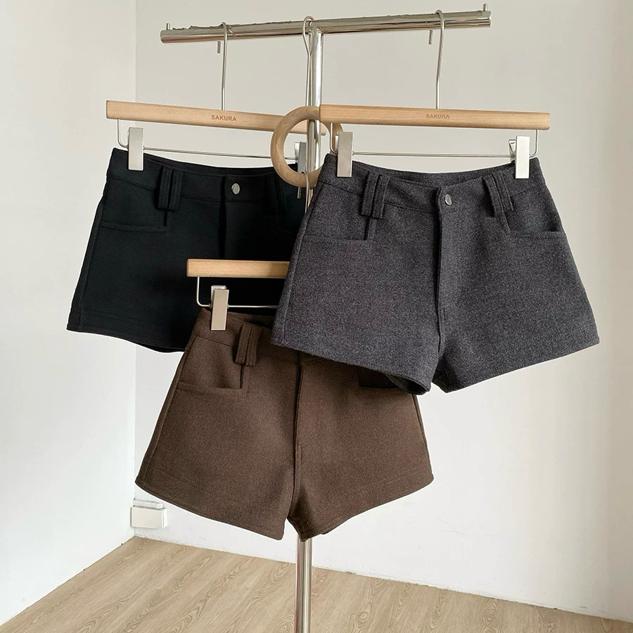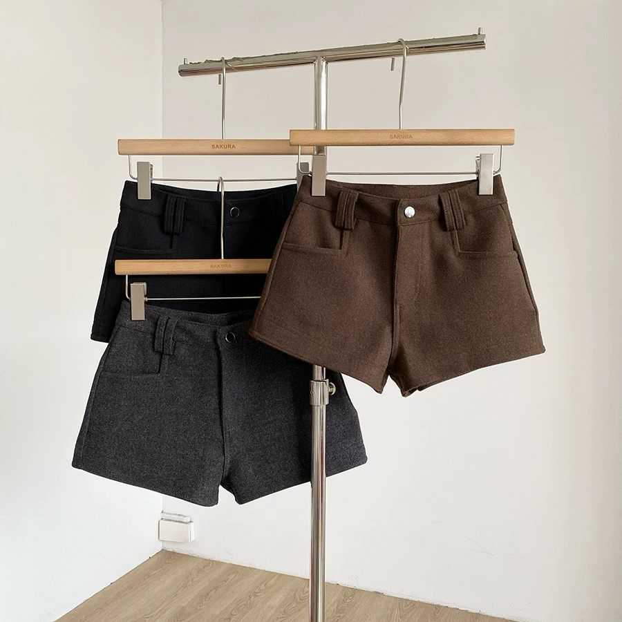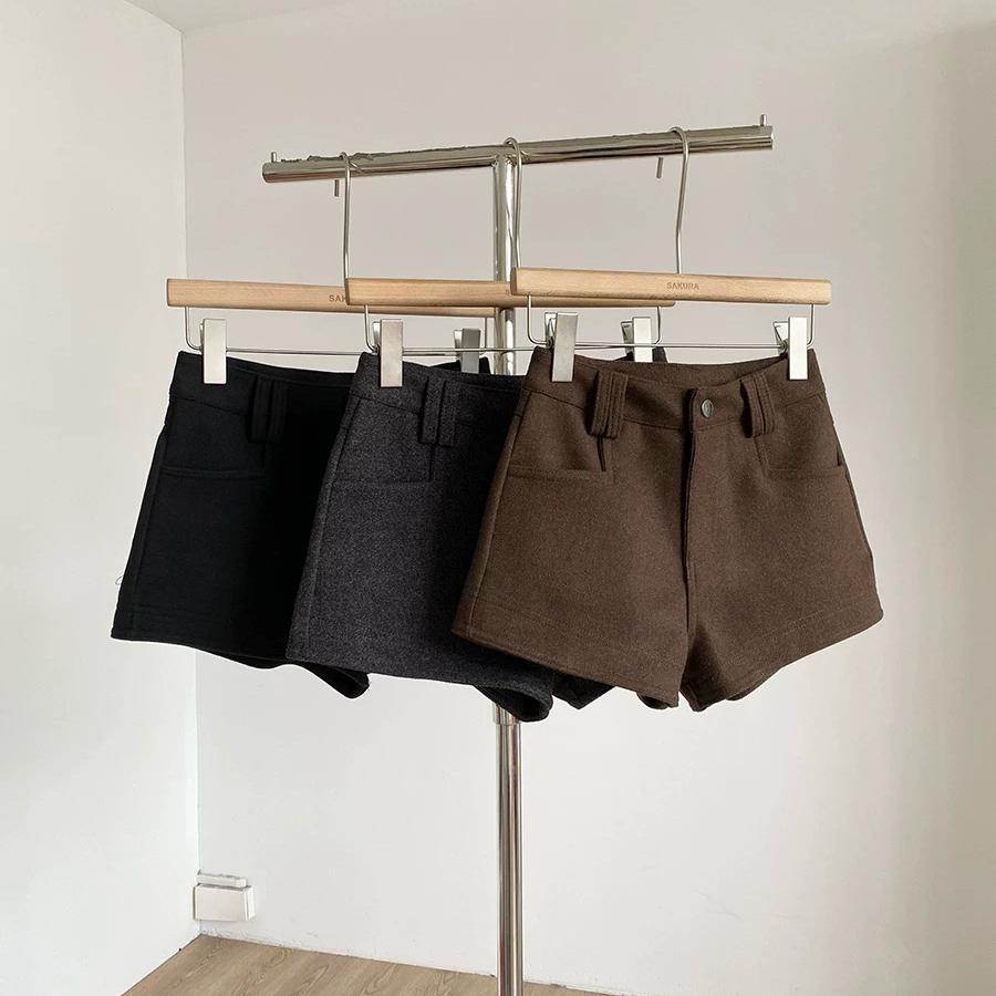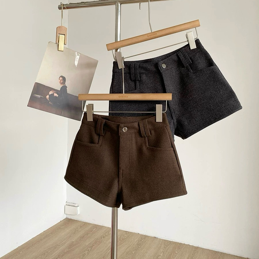 FA51222# 加厚高腰提臀显瘦毛呢阔腿裤女秋冬新款韩版通勤百搭a字短裤 服裝批發女裝批發服飾貨源