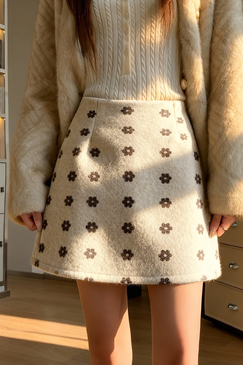 FA51304# 韩版冬季加厚灰色毛呢短裙女大码短裙小菊花刺绣防走光包臀半身裙 服裝批發女裝批發服飾貨源