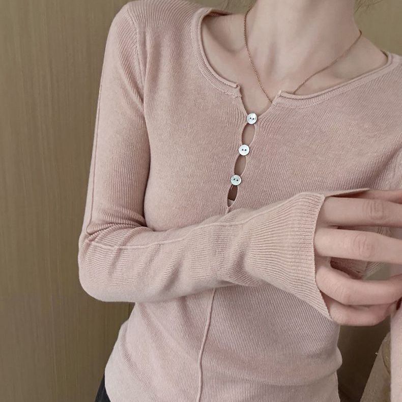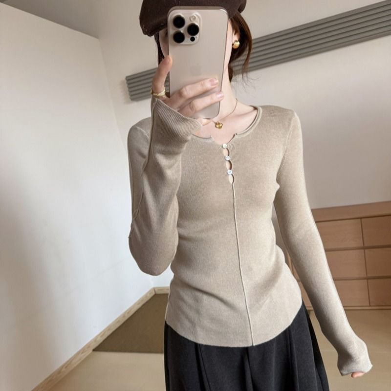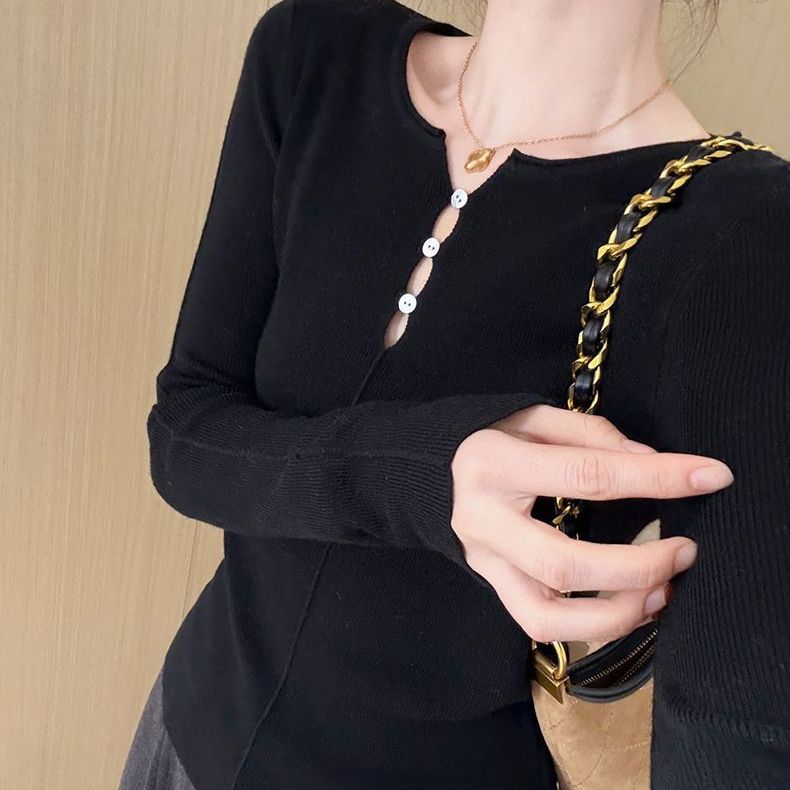 FA51608# 美式镂空小心机秋冬季内搭修身打底衫设计感显瘦长袖上衣 服裝批發女裝批發服飾貨源