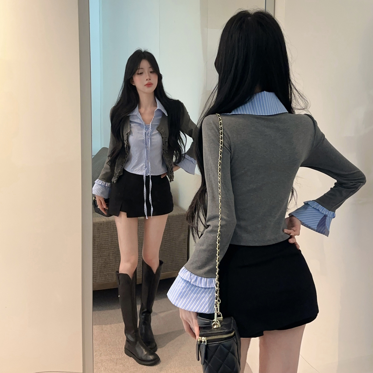 Hot : 大码 韩版 连衣裙 雪纺 衬衫 胖MM 牛仔 背带裤 假两件
