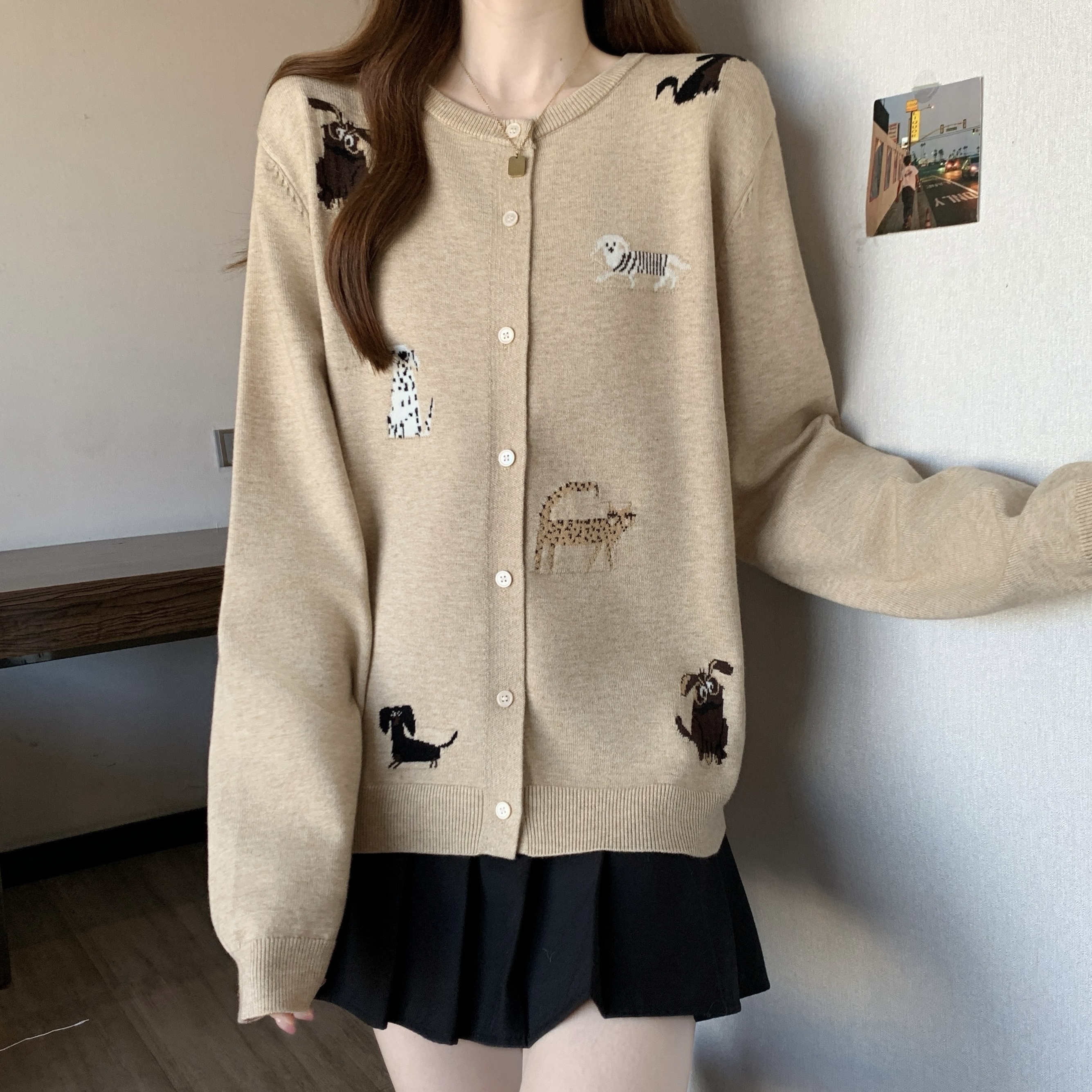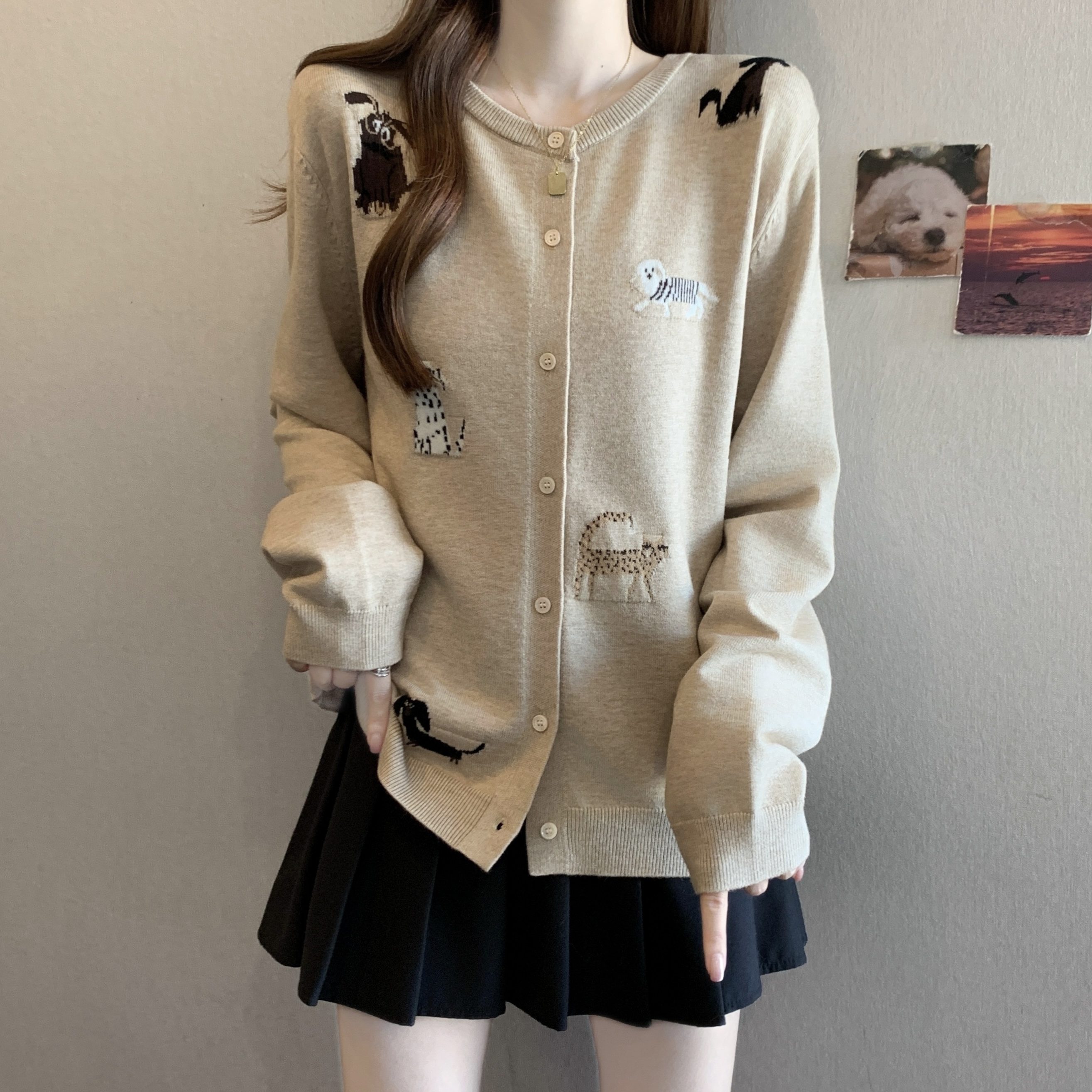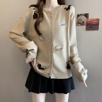 FA51628# 大码胖mm燕麦色针织衫长袖毛衣女秋冬新款动物提花显瘦上衣 服裝批發女裝批發服飾貨源