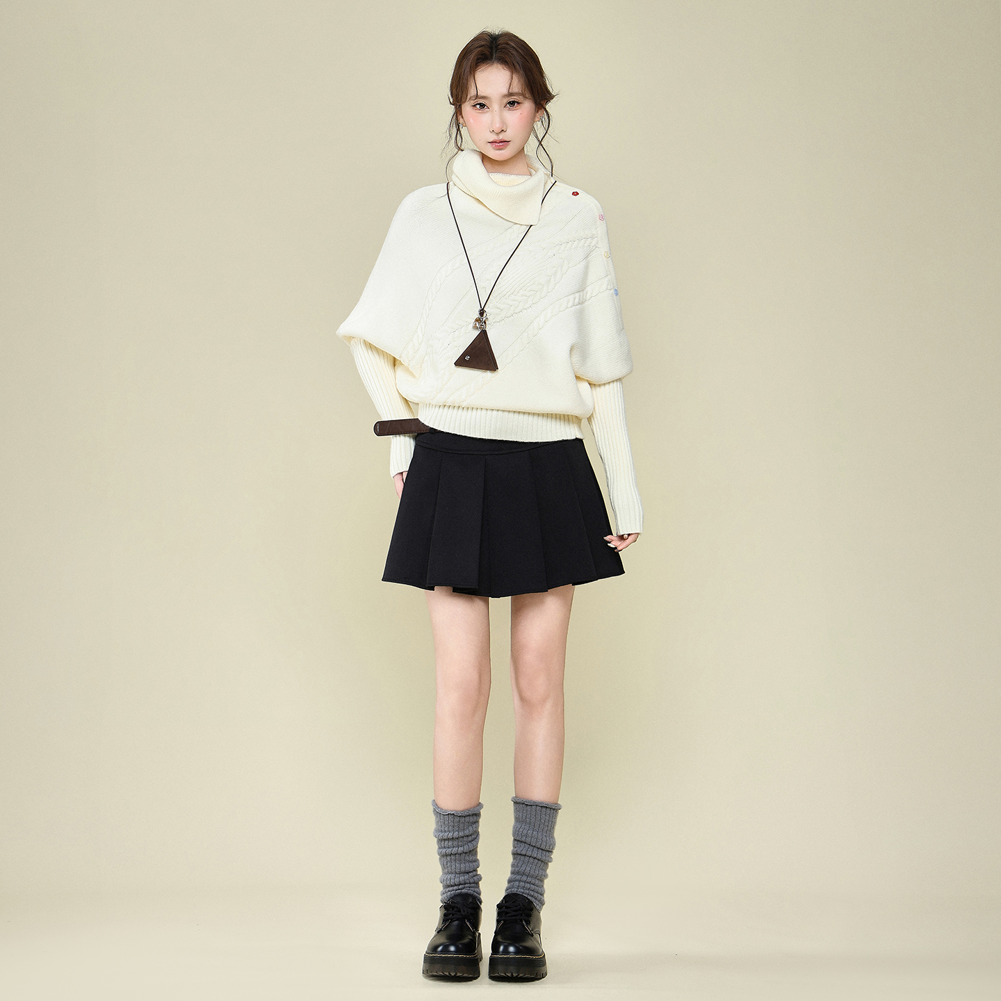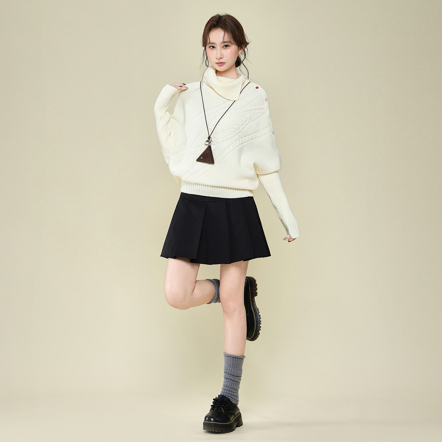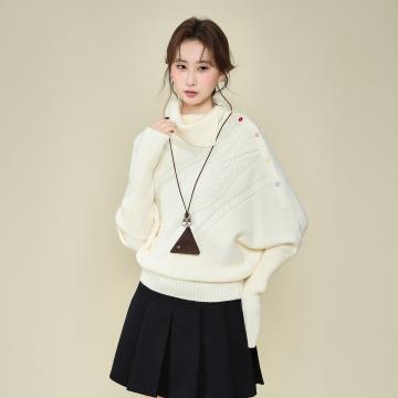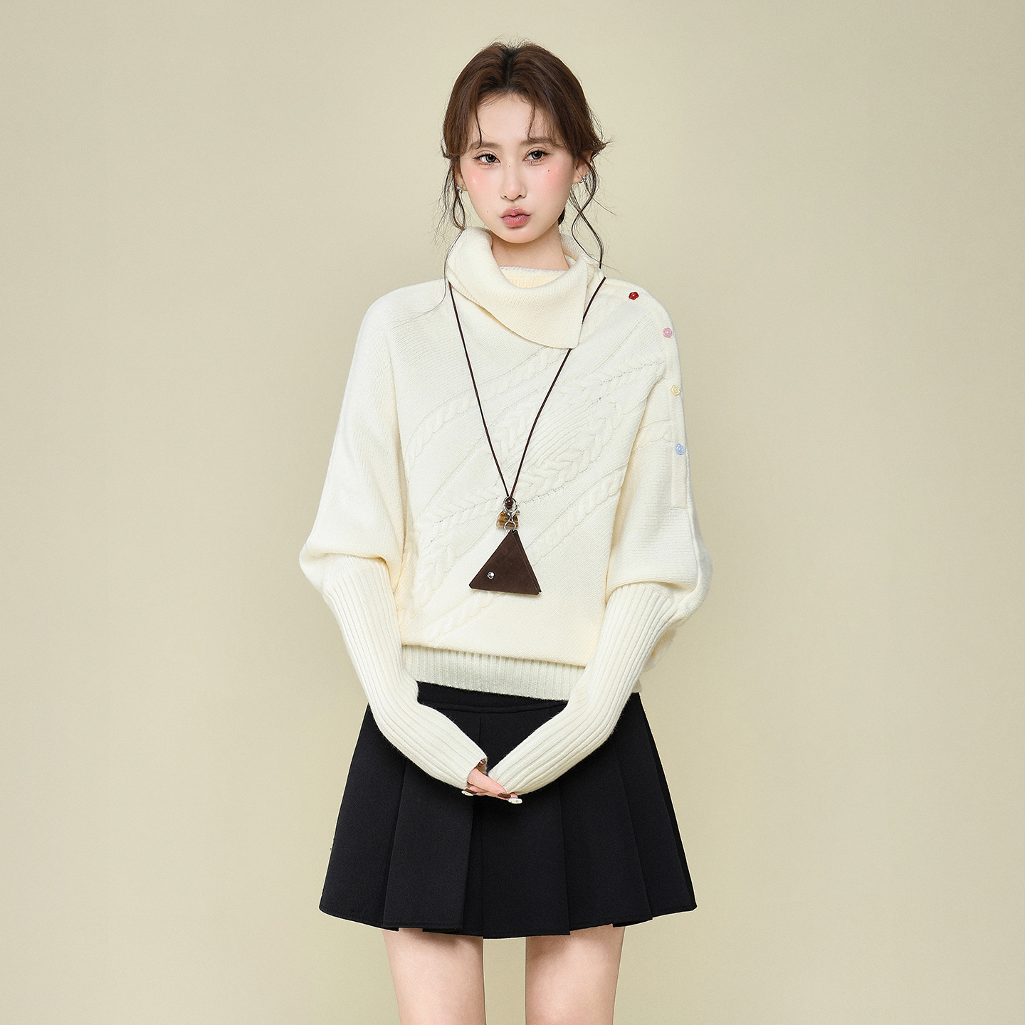 FA51754# 韩系翻领斗篷毛衣女秋冬新款宽松显瘦设计感针织上衣 服裝批發女裝批發服飾貨源