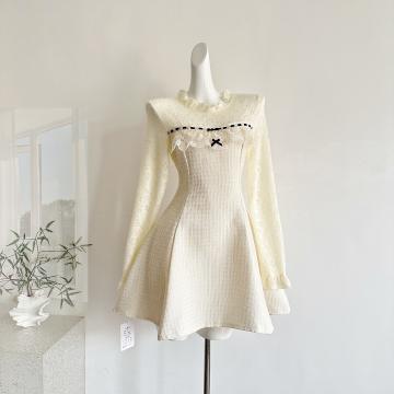 FA51253# 雪绒香榭/千金感小香风蕾丝花边精致年会连衣裙 服裝批發女裝批發服飾貨源